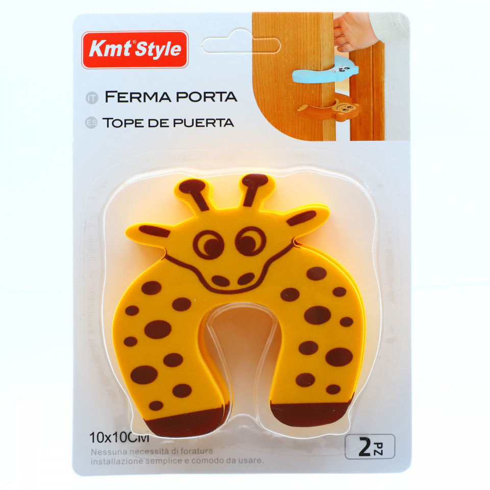 Opritor de usa pentru protectie copii, 10 x 10 cm, model girafa, Maro cu galben