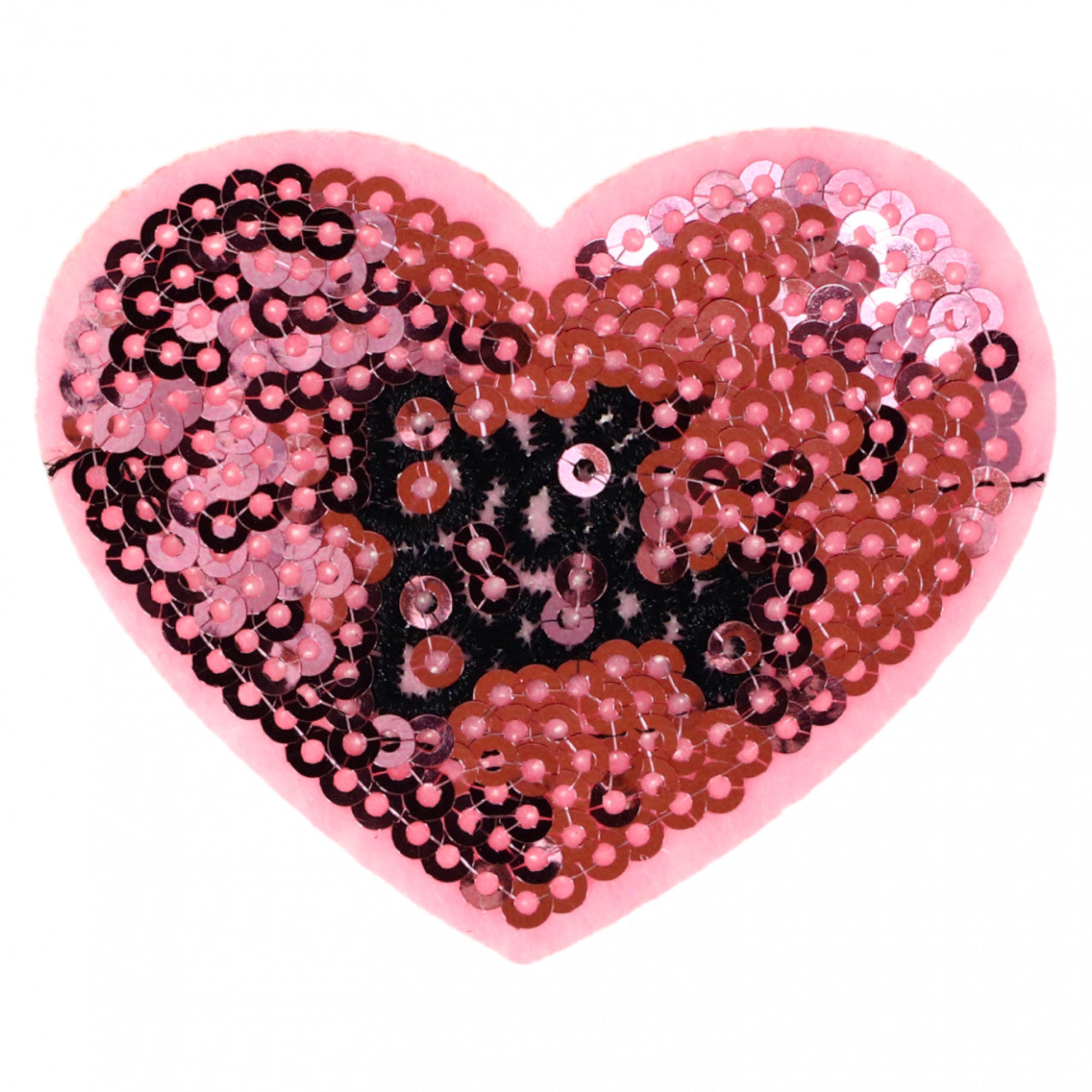 Petic textil, Patch, Inima, paiete, NO1574, 4.5 x 5.5 cm, Roz