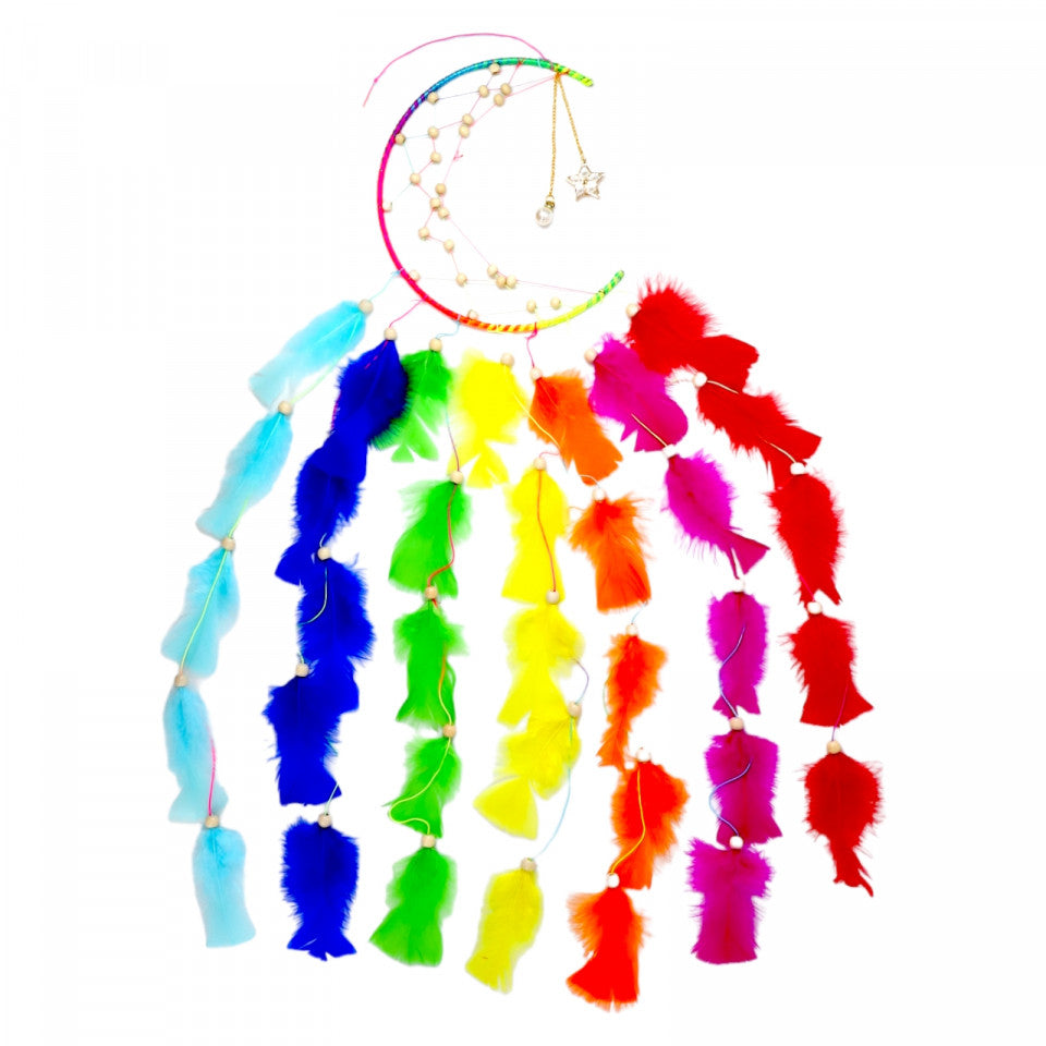 Prinzator de vise, cu 1 cerc semiluna si 7 fire, Dreamcatcher, Feng Shui, NO2053, 77 cm, Multicolor