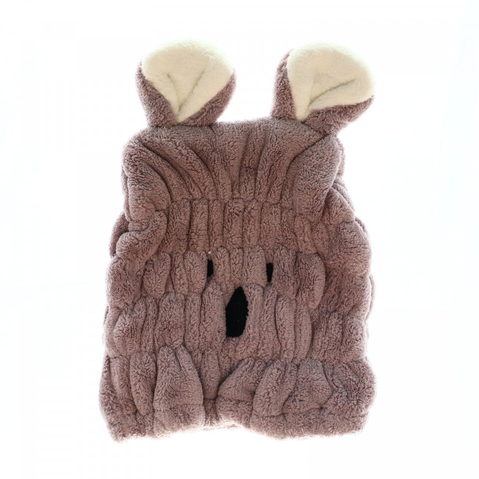 Prosop pentru uscat parul, tip caciulita, de copii, elastica, model ursulet, 20 x 16 cm, Mov