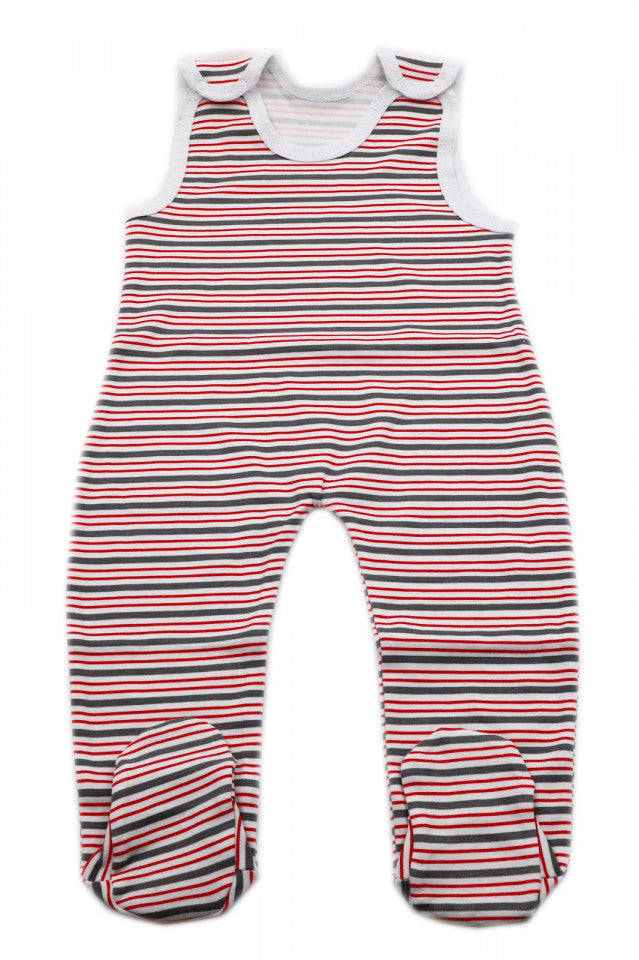 Salopeta bebe tip maieu, Imprimeu dungi rosii si gri, 0 - 3 luni, SM03SM5