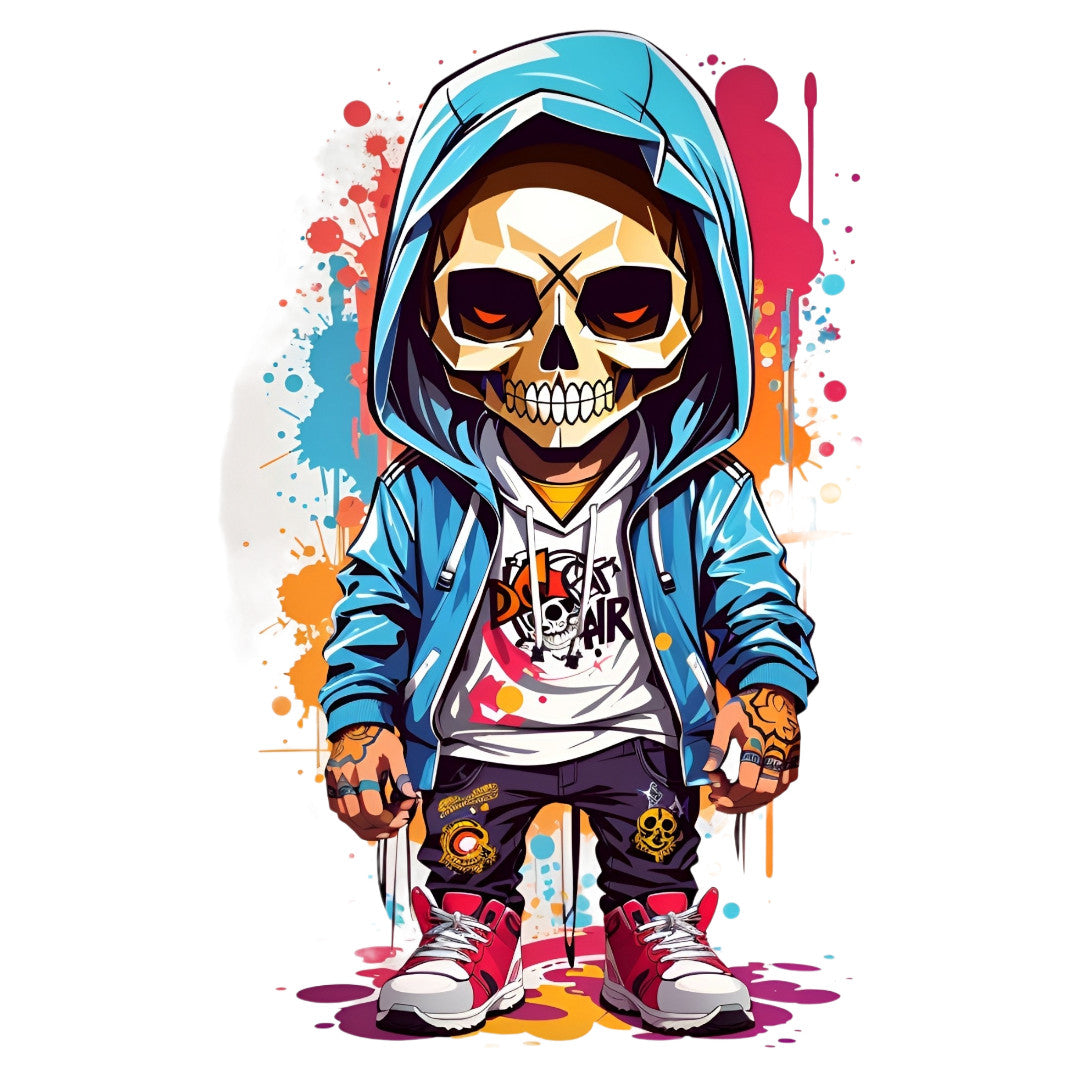 Set 12 bucati, Sticker decorativ, Baiat cu craniu, Rezistent la apa, NO4330, 6 cm, Multicolor