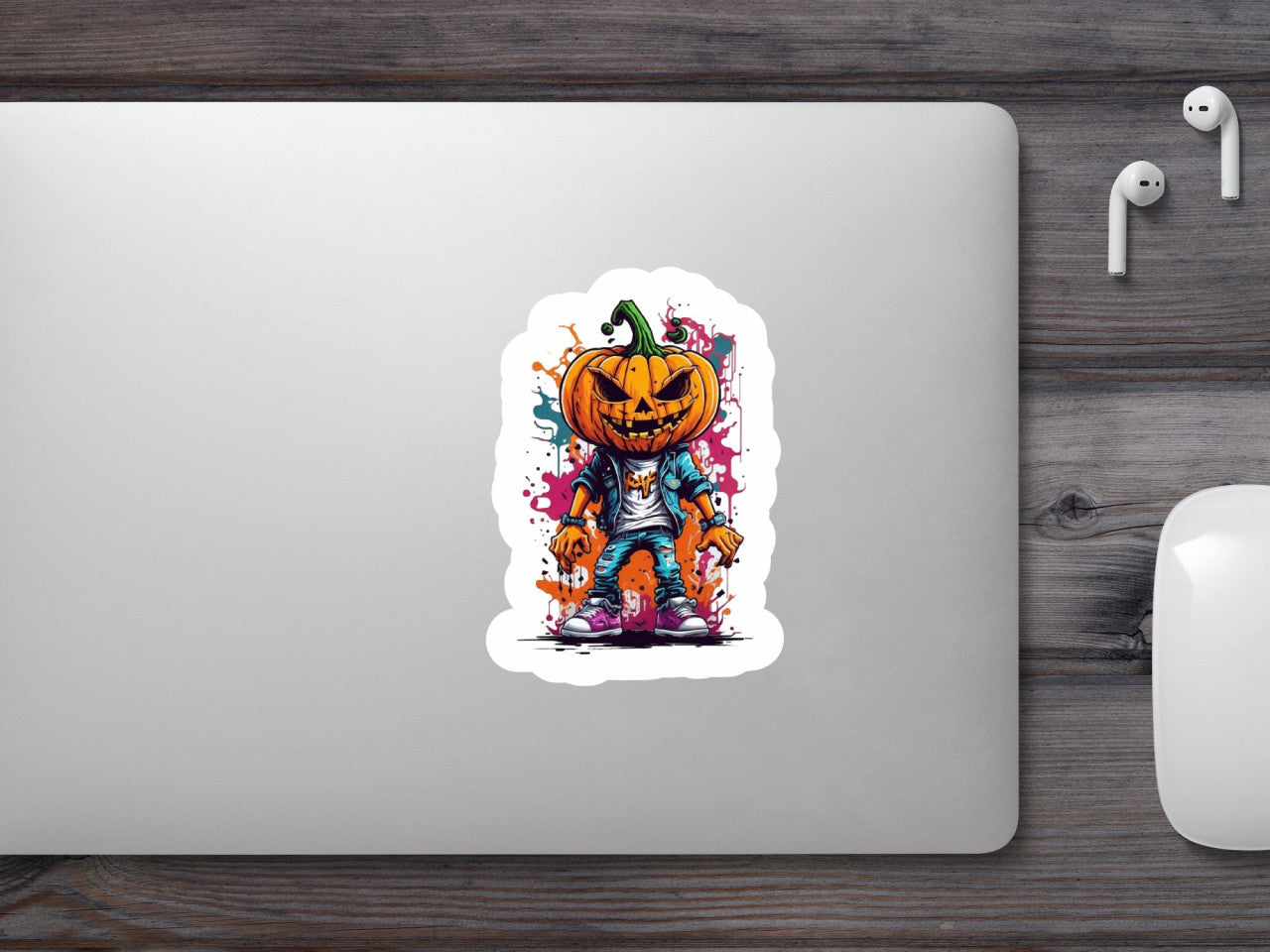 Set 12 bucati, Sticker decorativ, Baiat cu masca din dovleac, Rezistent la apa, NO4289, 6 cm, Multicolor