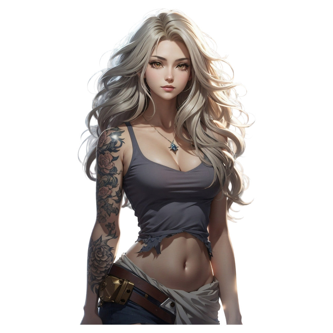 Set 12 bucati, Sticker decorativ, Blonda cu maieul scurt, Rezistent la apa, NO4171, 6 cm, Multicolor