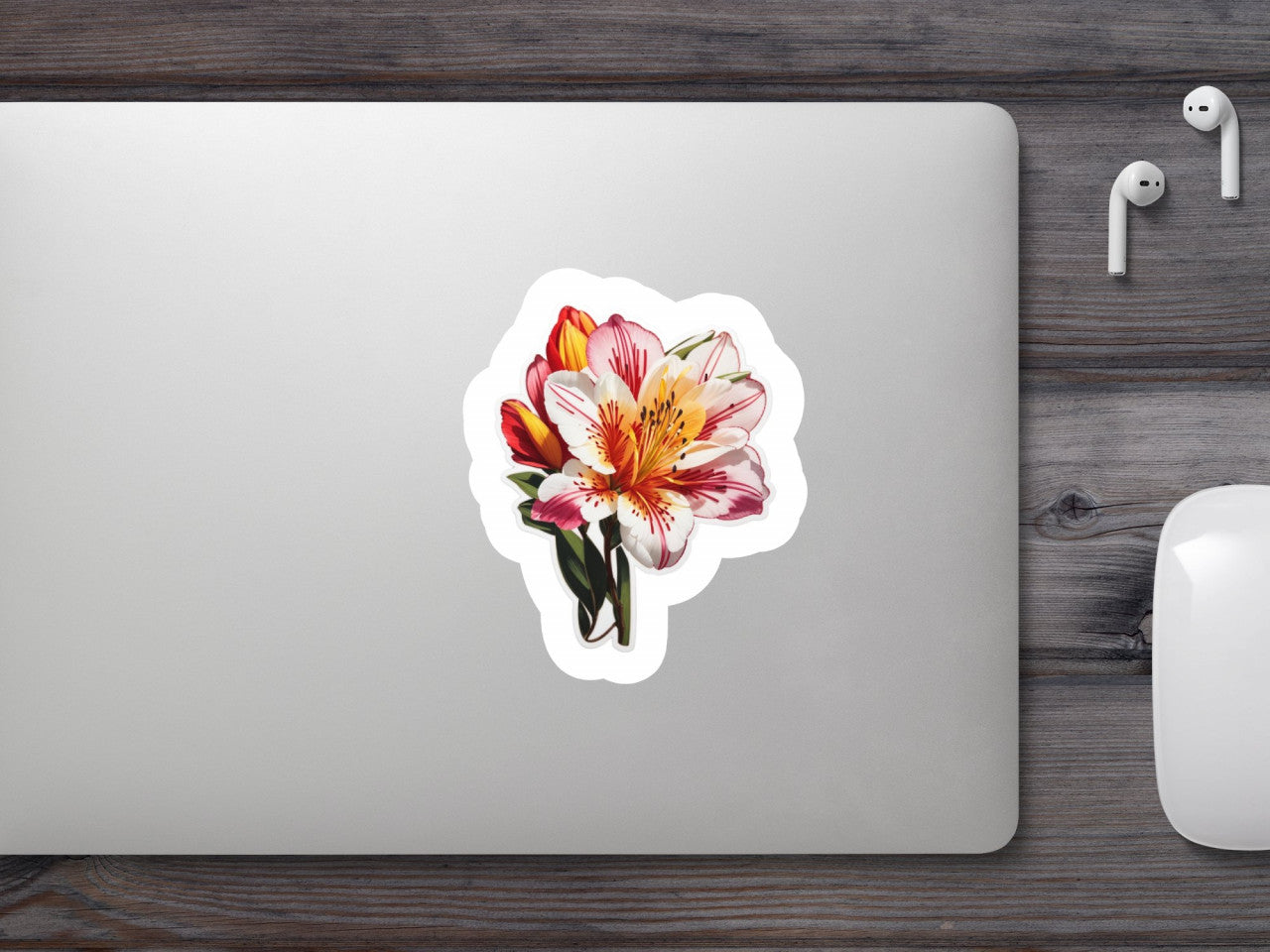 Set 12 bucati, Sticker decorativ, Buchet de astromeria fara frunze, Rezistent la apa, NO2566, 6 cm, Multicolor