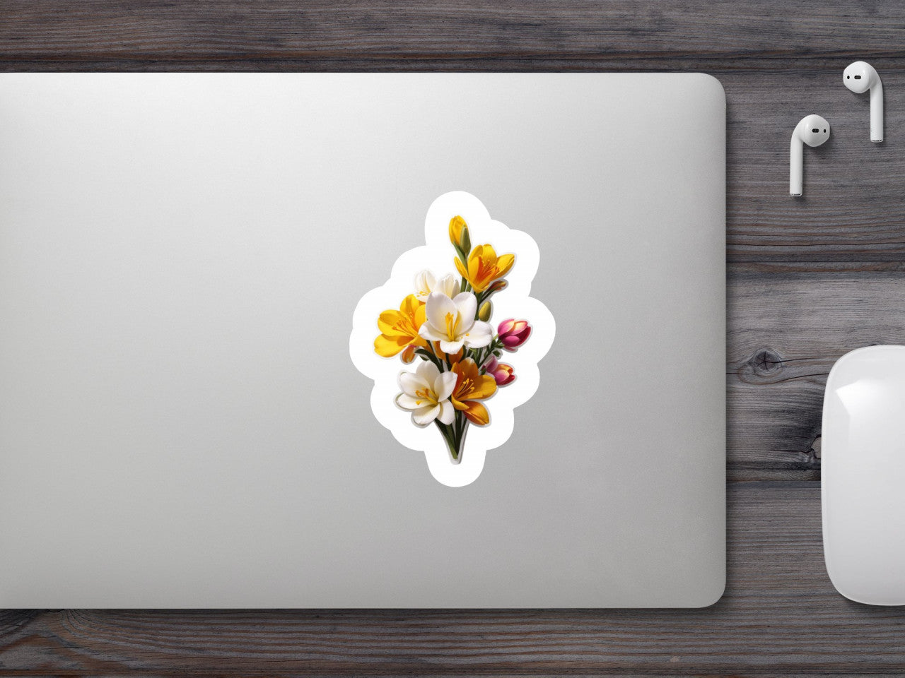 Set 12 bucati, Sticker decorativ, Buchet de frezii cu boboci, Rezistent la apa, NO2926, 6 cm, Multicolor