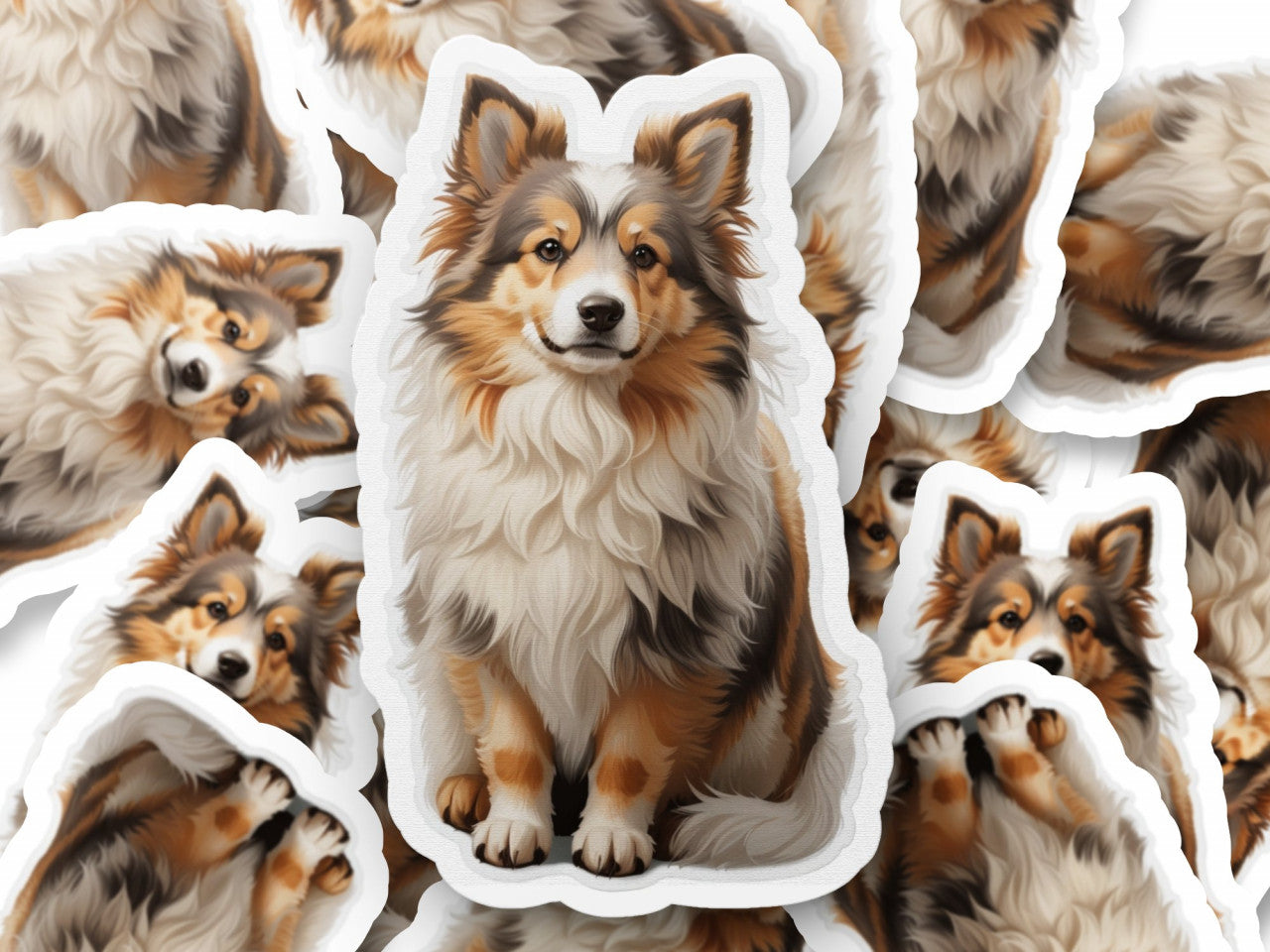 Set 12 bucati, Sticker decorativ, Caine Ciobanescde Shetland, Rezistent la apa, NO3558, 6 cm, Multicolor
