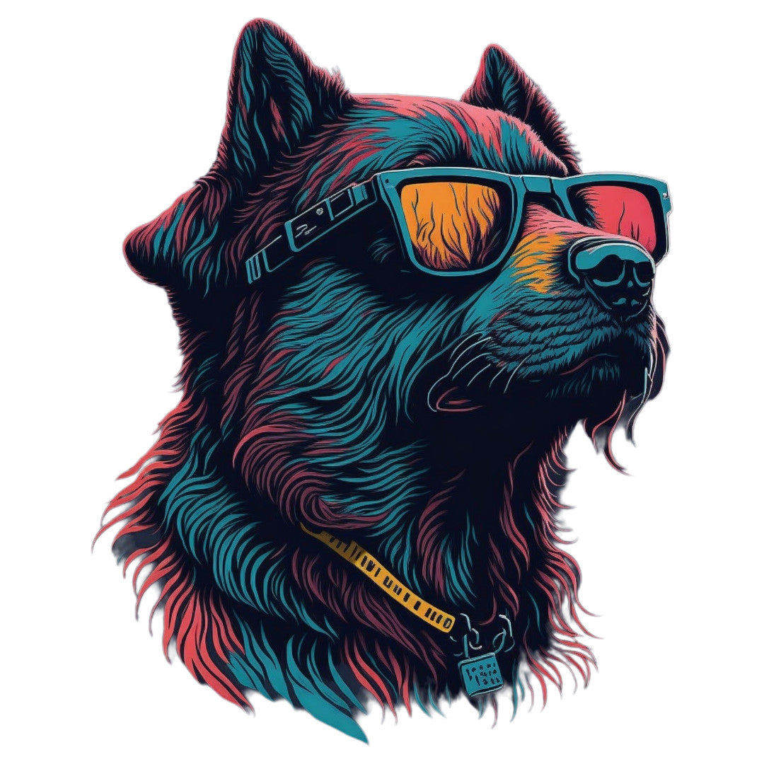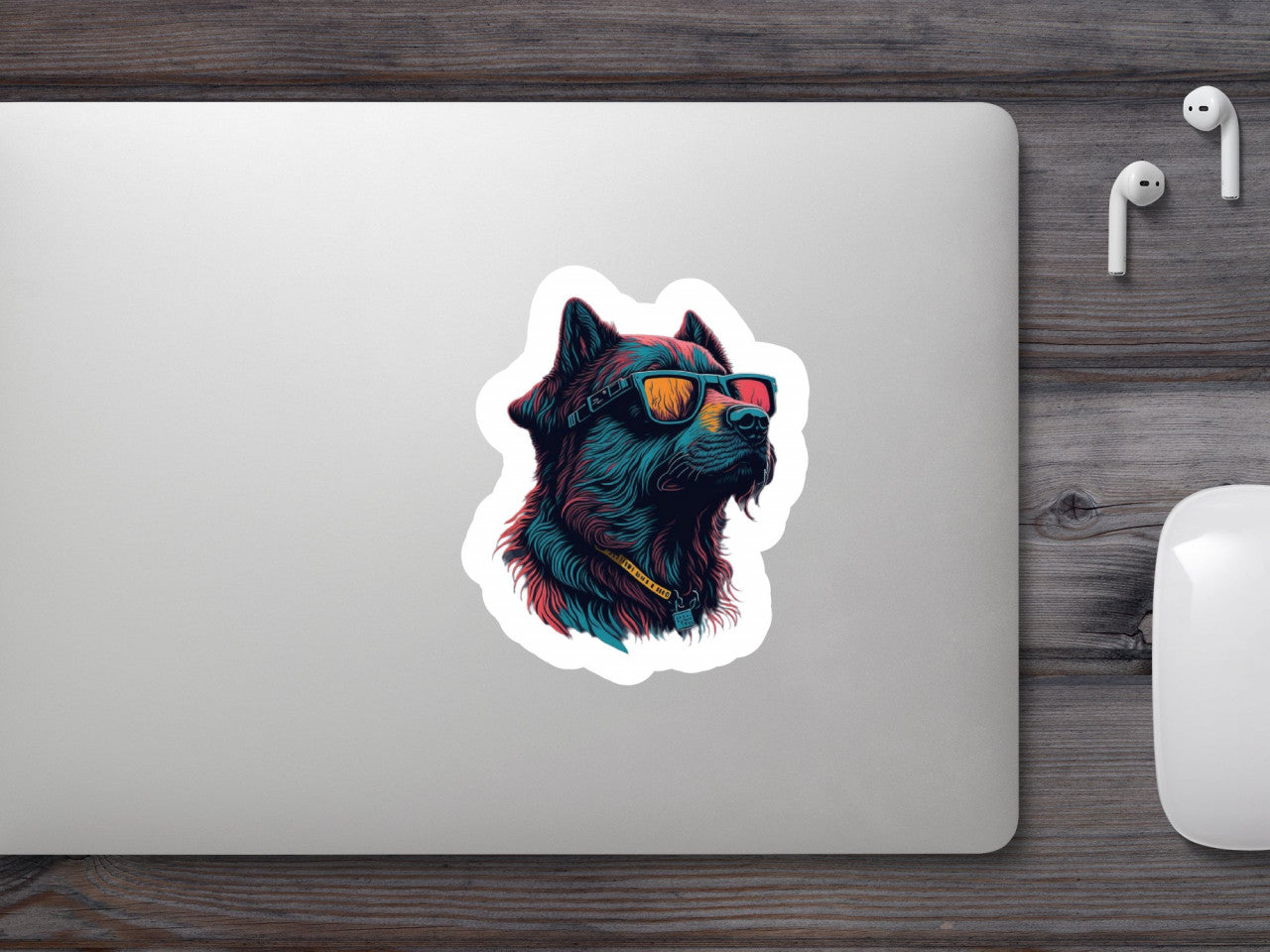 Set 12 bucati, Sticker decorativ, Cainele Cool cu zgarda si ochelari, Rezistent la apa, NO3839, 6 cm, Multicolor