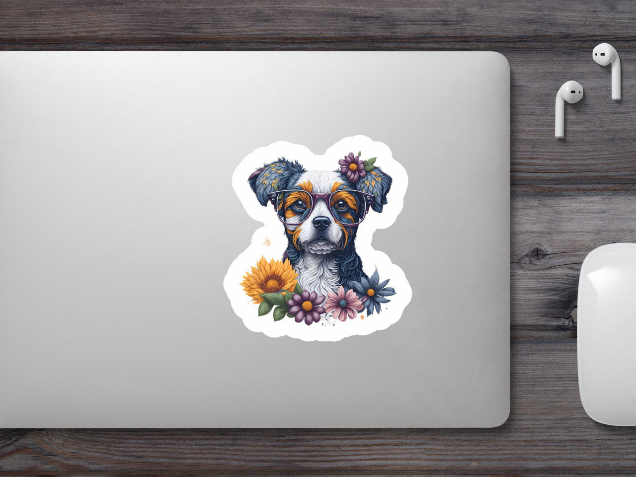 Set 12 bucati, Sticker decorativ, Cainele cu ochelari, Rezistent la apa, NO3893, 6 cm, Multicolor