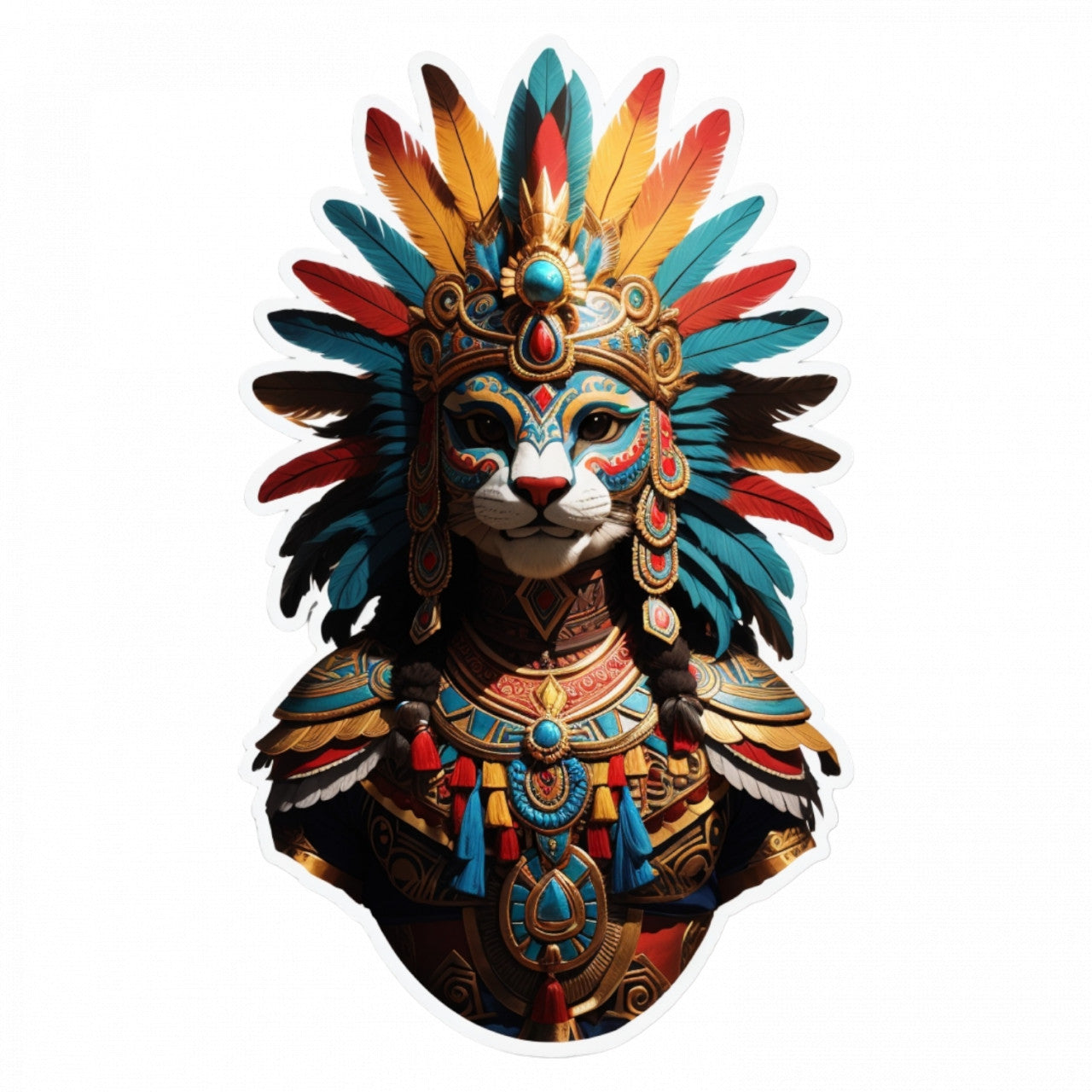 Set 12 bucati, Sticker decorativ, Creatura mitologica Cipactli cu coif din pene, Rezistent la apa, NO2733, 6 cm, Multicolor