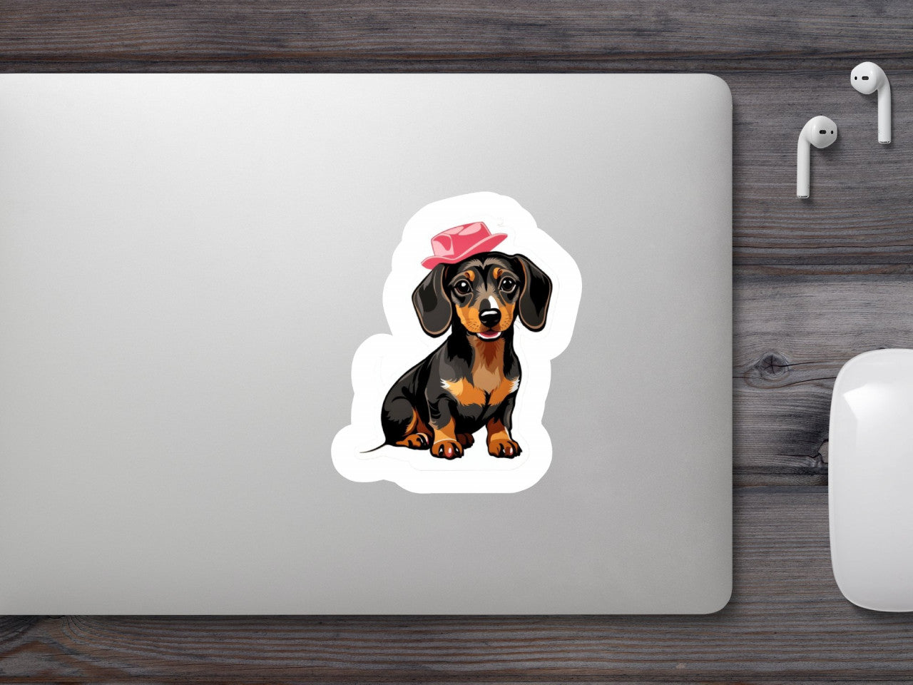 Set 12 bucati, Sticker decorativ, Dachshud cu palarie, Rezistent la apa, NO4387, 6 cm, Multicolor