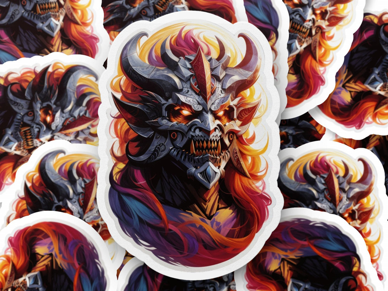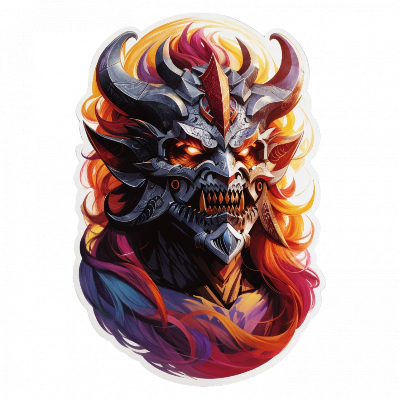 Set 12 bucati, Sticker decorativ, Demonul Andras masca de lupta, Rezistent la apa, NO2539, 6 cm, Multicolor