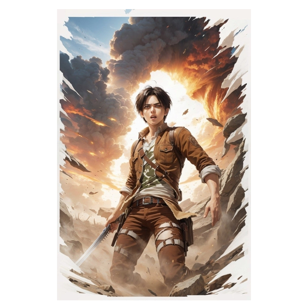 Set 12 bucati, Sticker decorativ, Eren in lupta, Rezistent la apa, NO4406, 6 cm, Multicolor