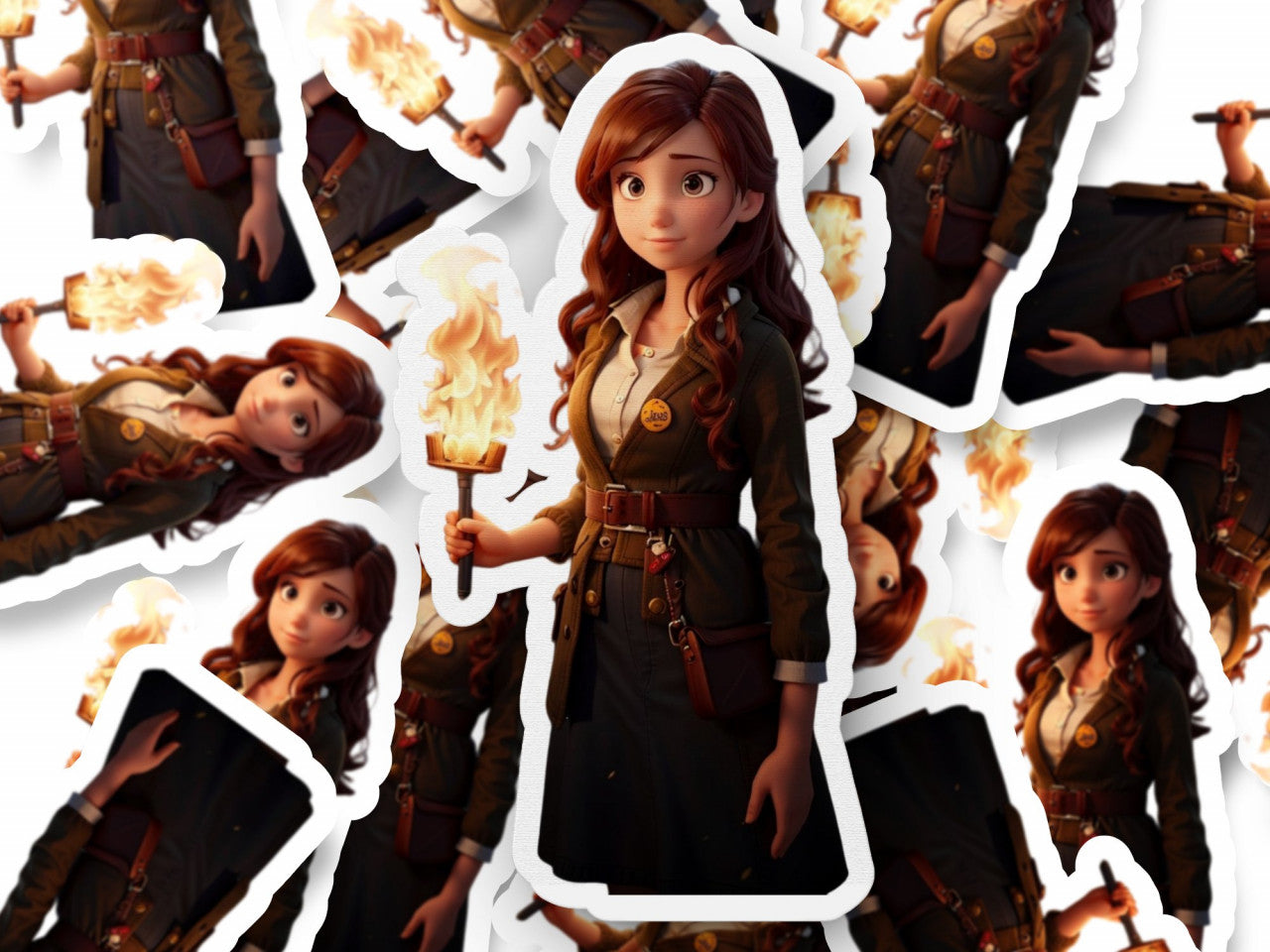 Set 12 bucati, Sticker decorativ, Fetita care aduce focul, Rezistent la apa, NO3771, 6 cm, Multicolor