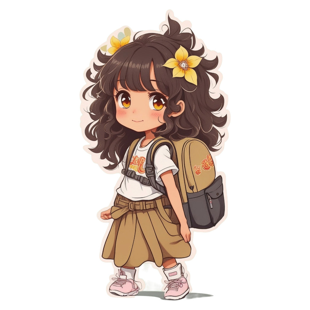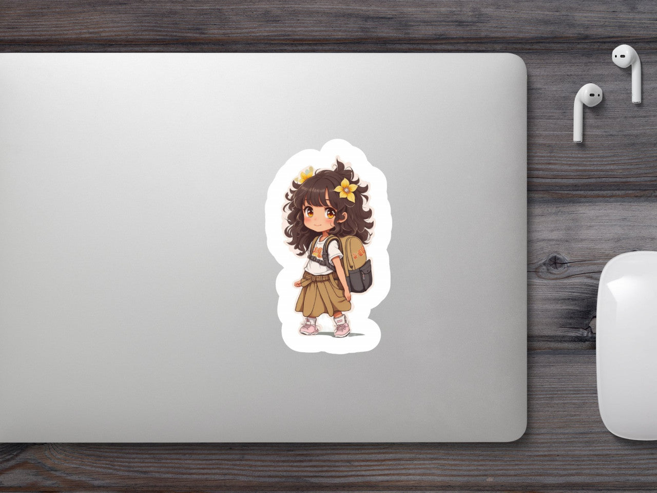 Set 12 bucati, Sticker decorativ, Fetita cu ghiozdan, Rezistent la apa, NO3890, 6 cm, Multicolor