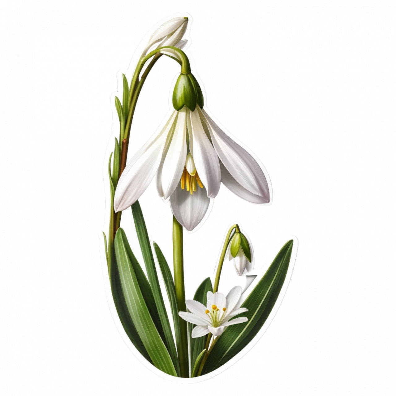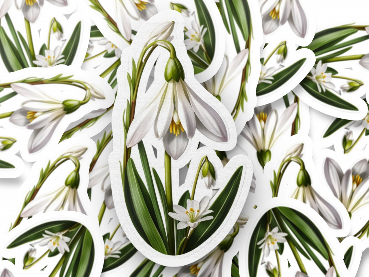 Set 12 bucati, Sticker decorativ, Fir de ghiocel, Rezistent la apa, NO3597, 6 cm, Multicolor