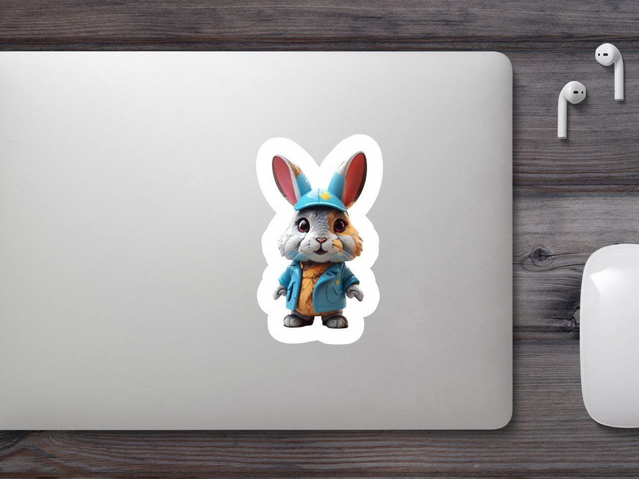 Set 12 bucati, Sticker decorativ, Iepure cu sapca si jacheta, Rezistent la apa, NO4590, 6 cm, Multicolor