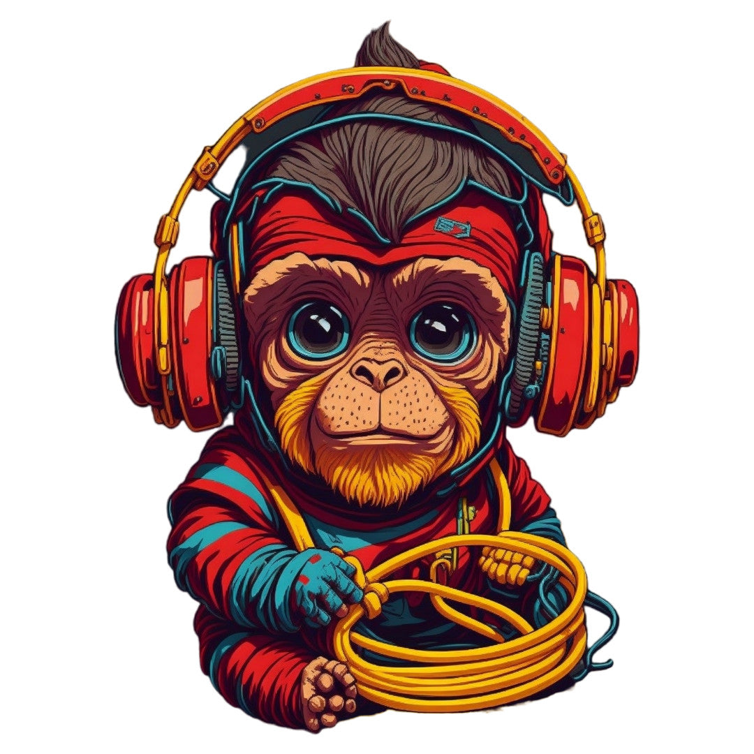 Set 12 bucati, Sticker decorativ, Maimuta cu casti, Rezistent la apa, NO3985, 6 cm, Multicolor