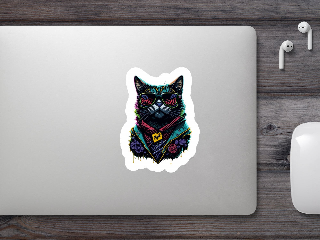 Set 12 bucati, Sticker decorativ, Motanul imbracat, Rezistent la apa, NO4292, 6 cm, Multicolor