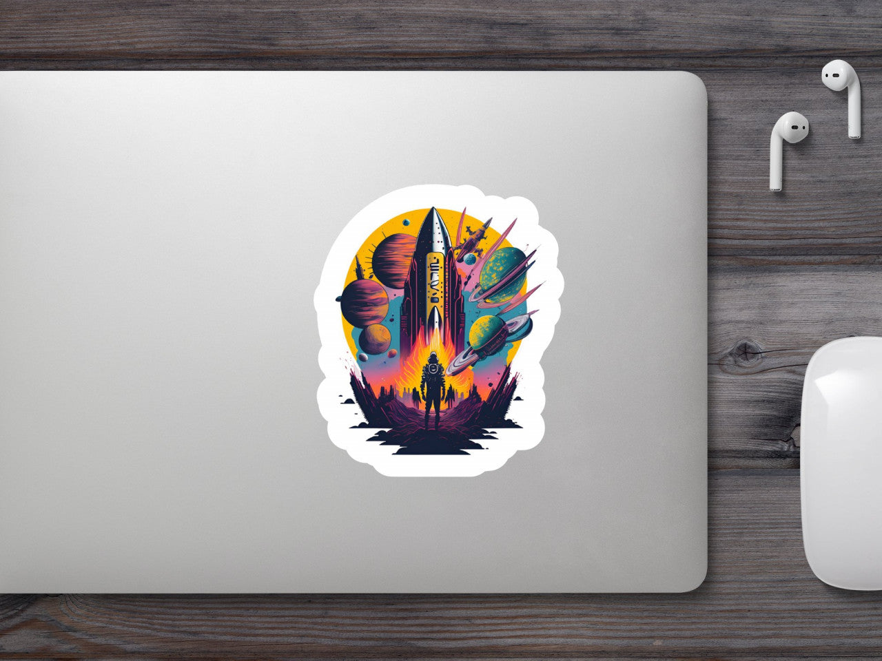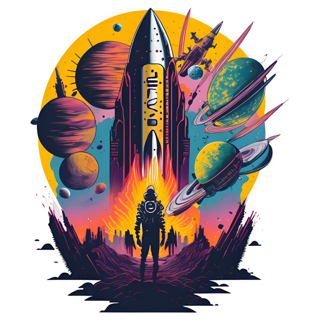Set 12 bucati, Sticker decorativ, Nava spatiala, Rezistent la apa, NO3819, 6 cm, Multicolor