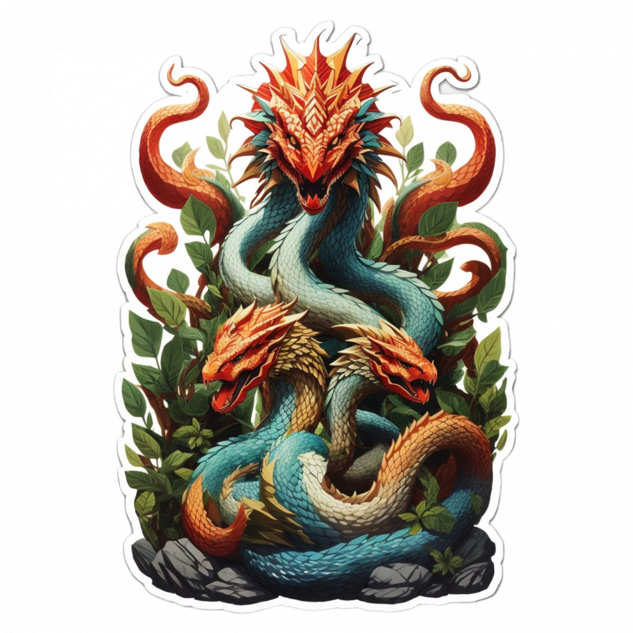 Set 12 bucati, Sticker decorativ, Personaj mitologic Hydra cu multe capete, Rezistent la apa, NO3084, 6 cm, Multicolor