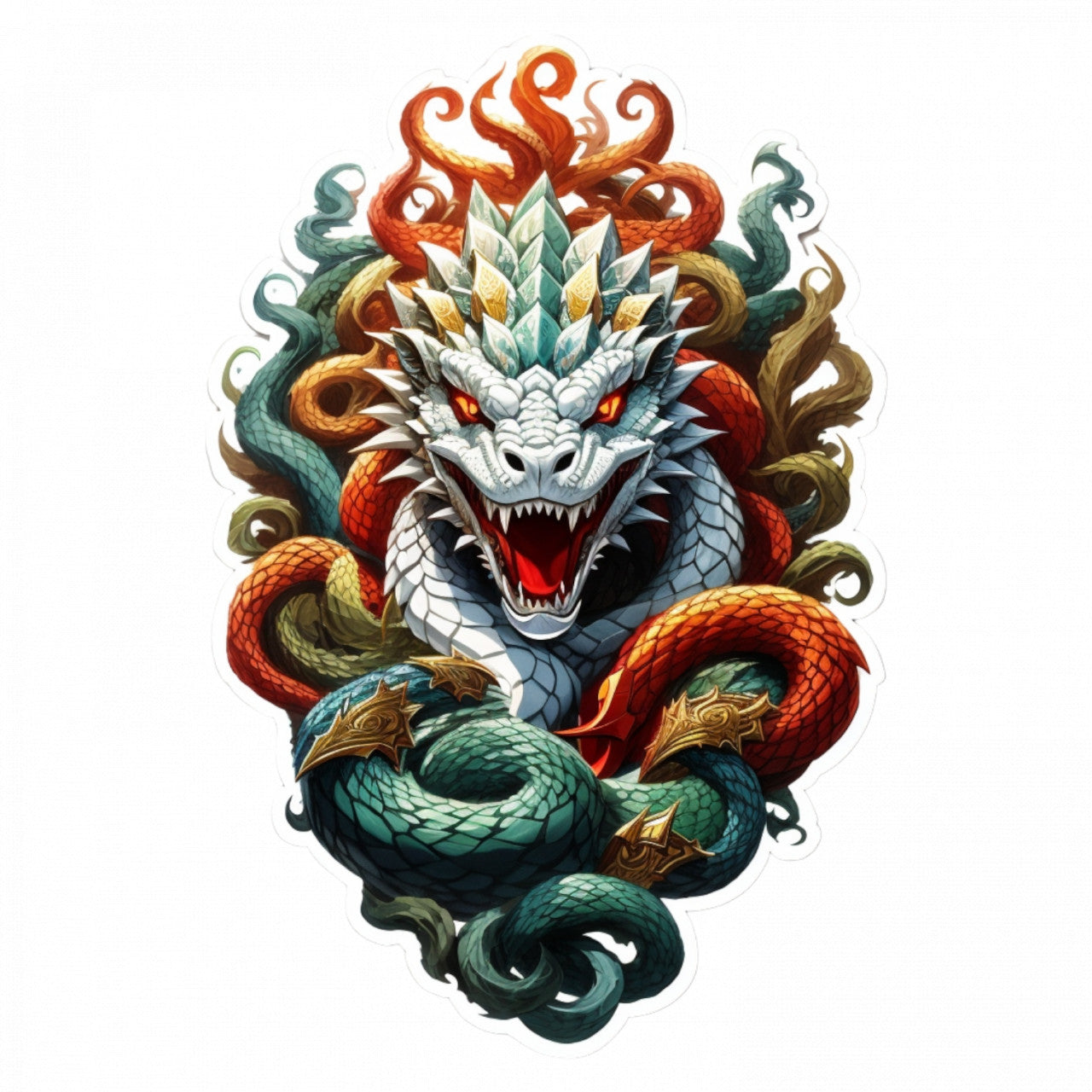 Set 12 bucati, Sticker decorativ, Personaj mitologic Hydra, Rezistent la apa, NO3081, 6 cm, Multicolor