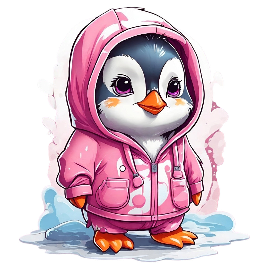Set 12 bucati, Sticker decorativ, Pinguinul Kawaii, Rezistent la apa, NO4176, 6 cm, Multicolor