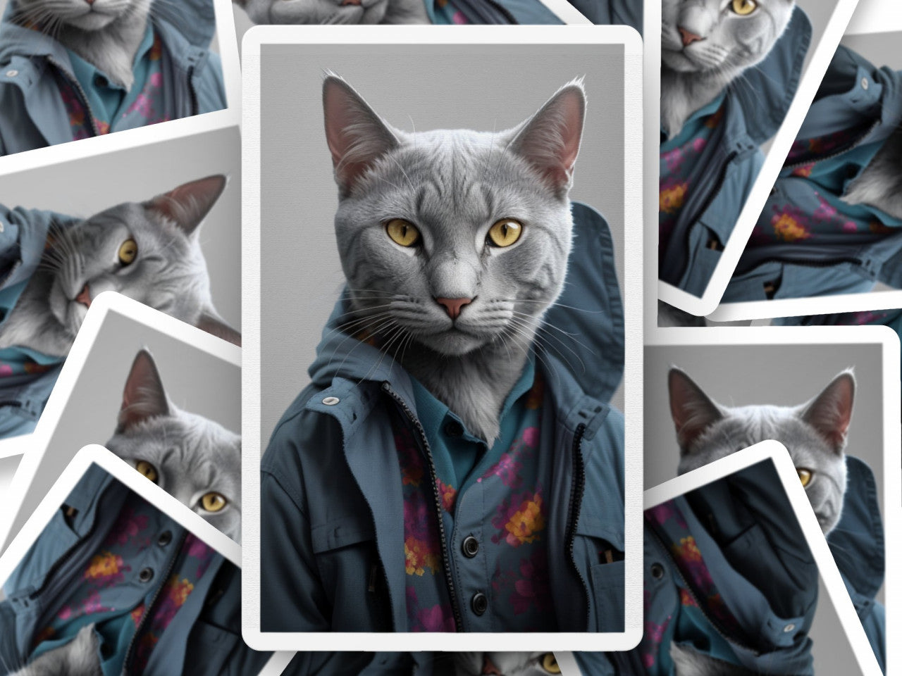 Set 12 bucati, Sticker decorativ, Pisica albastru de rusia cu jacheta, Rezistent la apa, NO3507, 6 cm, Multicolor