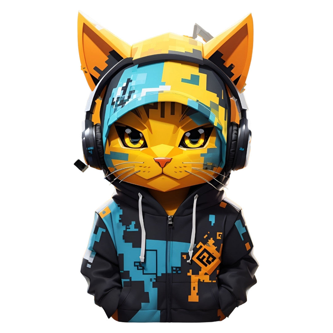 Set 12 bucati, Sticker decorativ, Pisica cu casti, Rezistent la apa, NO4044, 6 cm, Multicolor