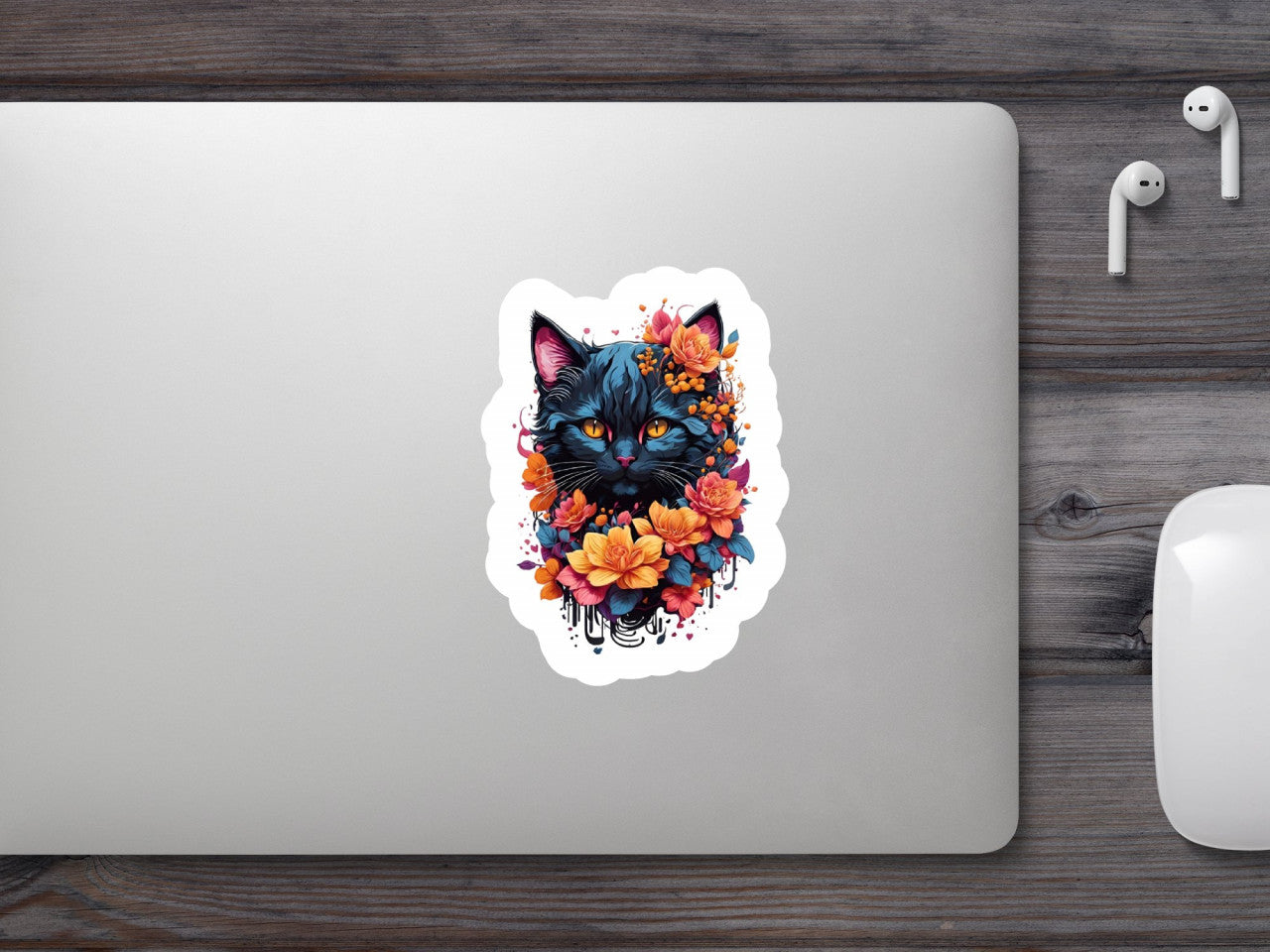 Set 12 bucati, Sticker decorativ, Pisica cu ghirlanda, Rezistent la apa, NO4281, 6 cm, Multicolor