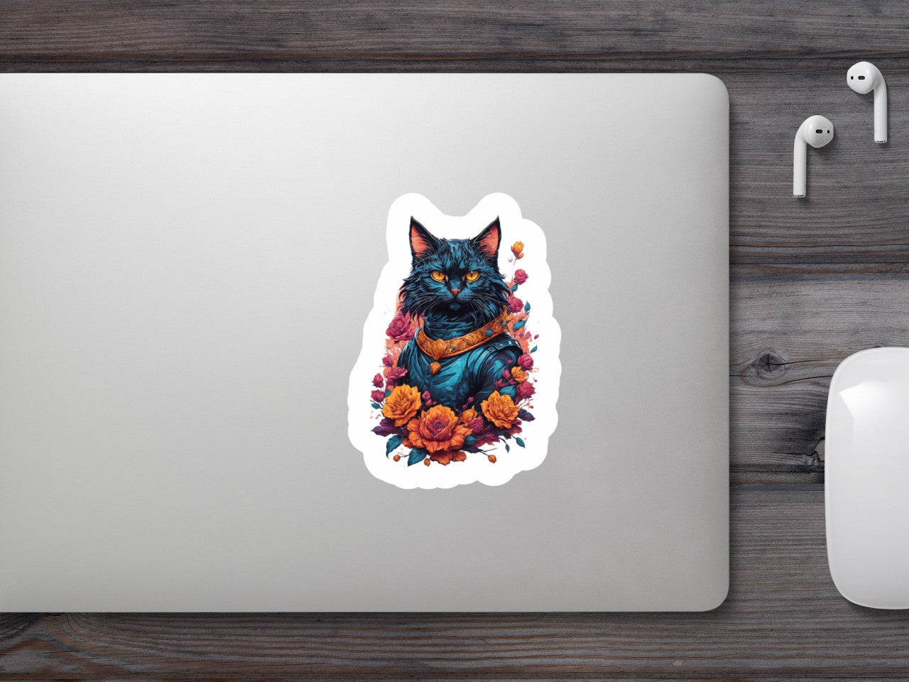 Set 12 bucati, Sticker decorativ, Pisica cu medalion, Rezistent la apa, NO4659, 6 cm, Multicolor