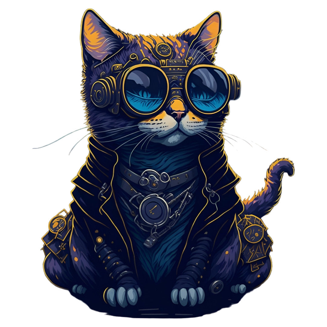 Set 12 bucati, Sticker decorativ, Pisica cu ochelari de soare, Rezistent la apa, NO4216, 6 cm, Multicolor