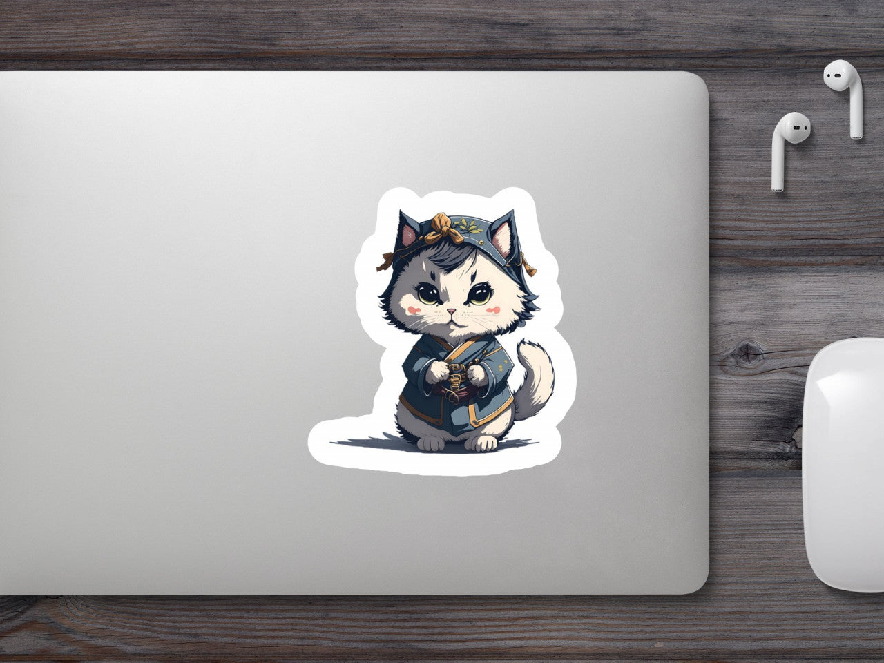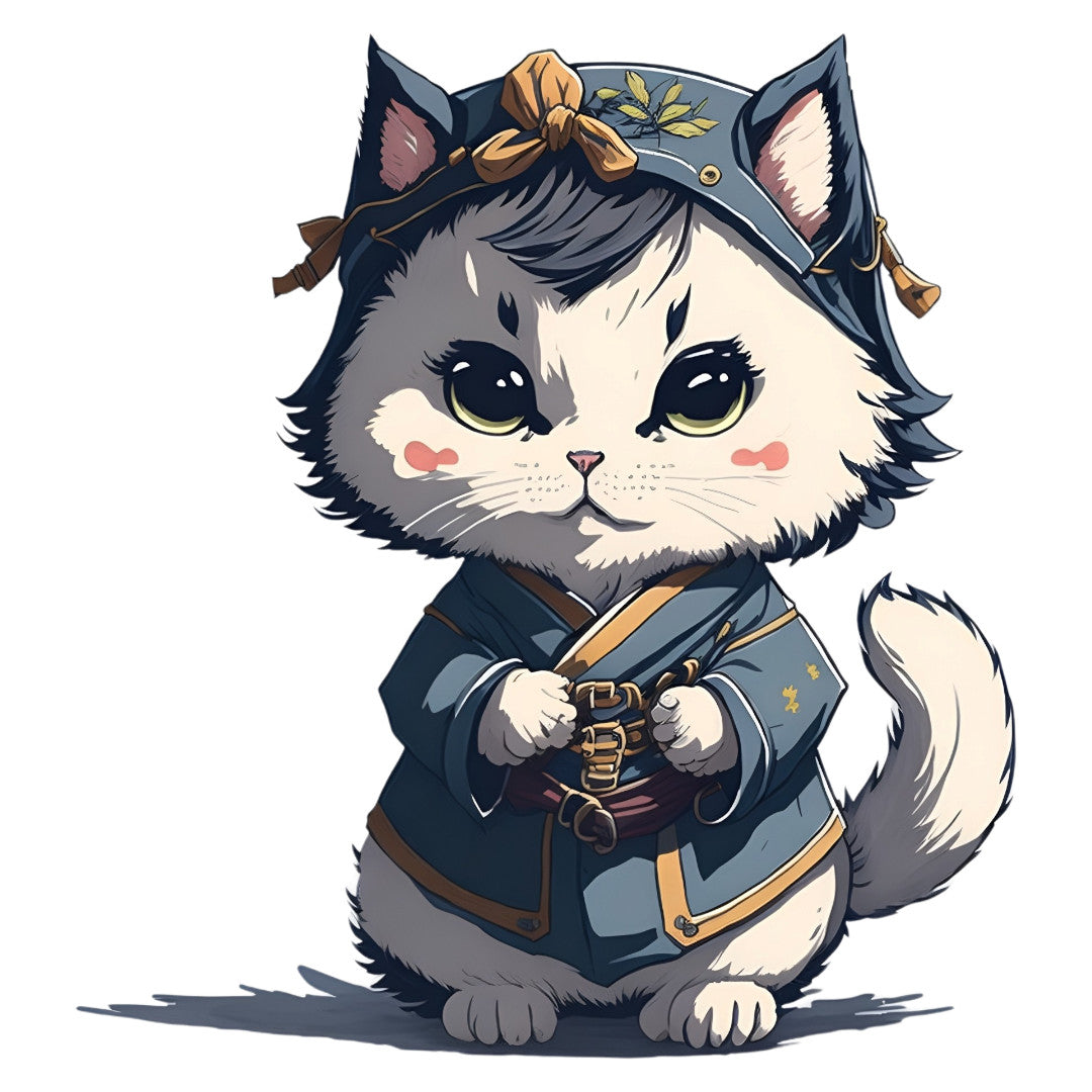 Set 12 bucati, Sticker decorativ, Pisica imbracata in chimino, Rezistent la apa, NO3803, 6 cm, Multicolor
