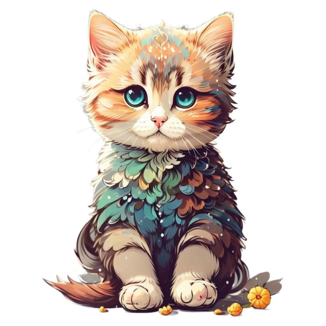 Set 12 bucati, Sticker decorativ, Pisica imbracata , Rezistent la apa, NO4573, 6 cm, Multicolor