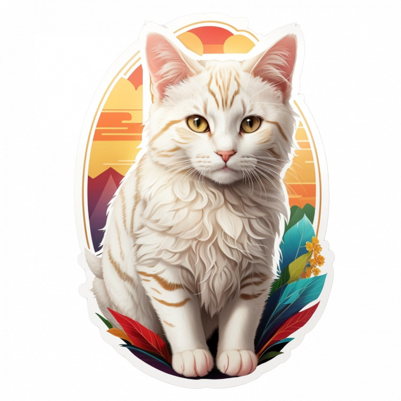 Set 12 bucati, Sticker decorativ, Pisica Khao manee, Rezistent la apa, NO3115, 6 cm, Multicolor