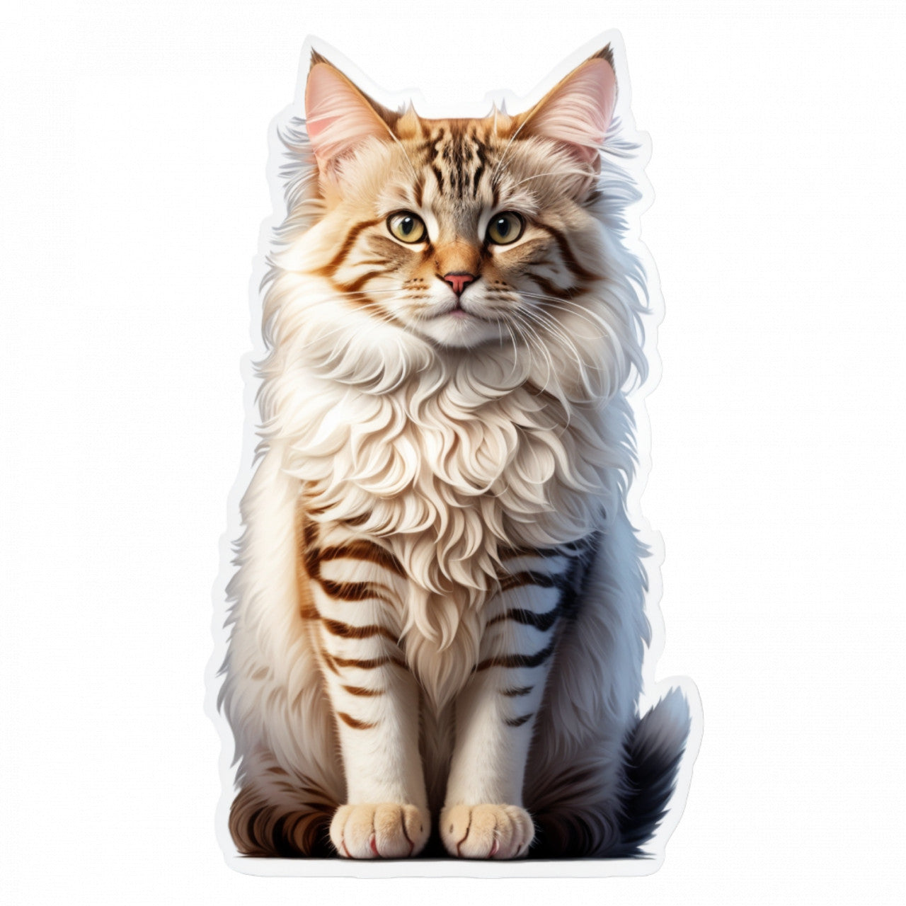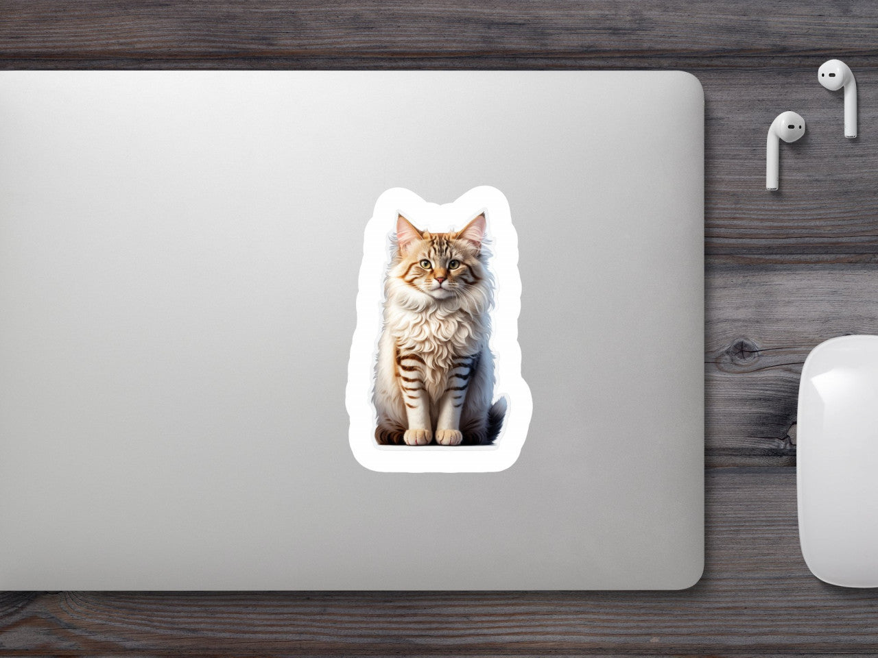 Set 12 bucati, Sticker decorativ, Pisica Laperm, Rezistent la apa, NO3130, 6 cm, Multicolor