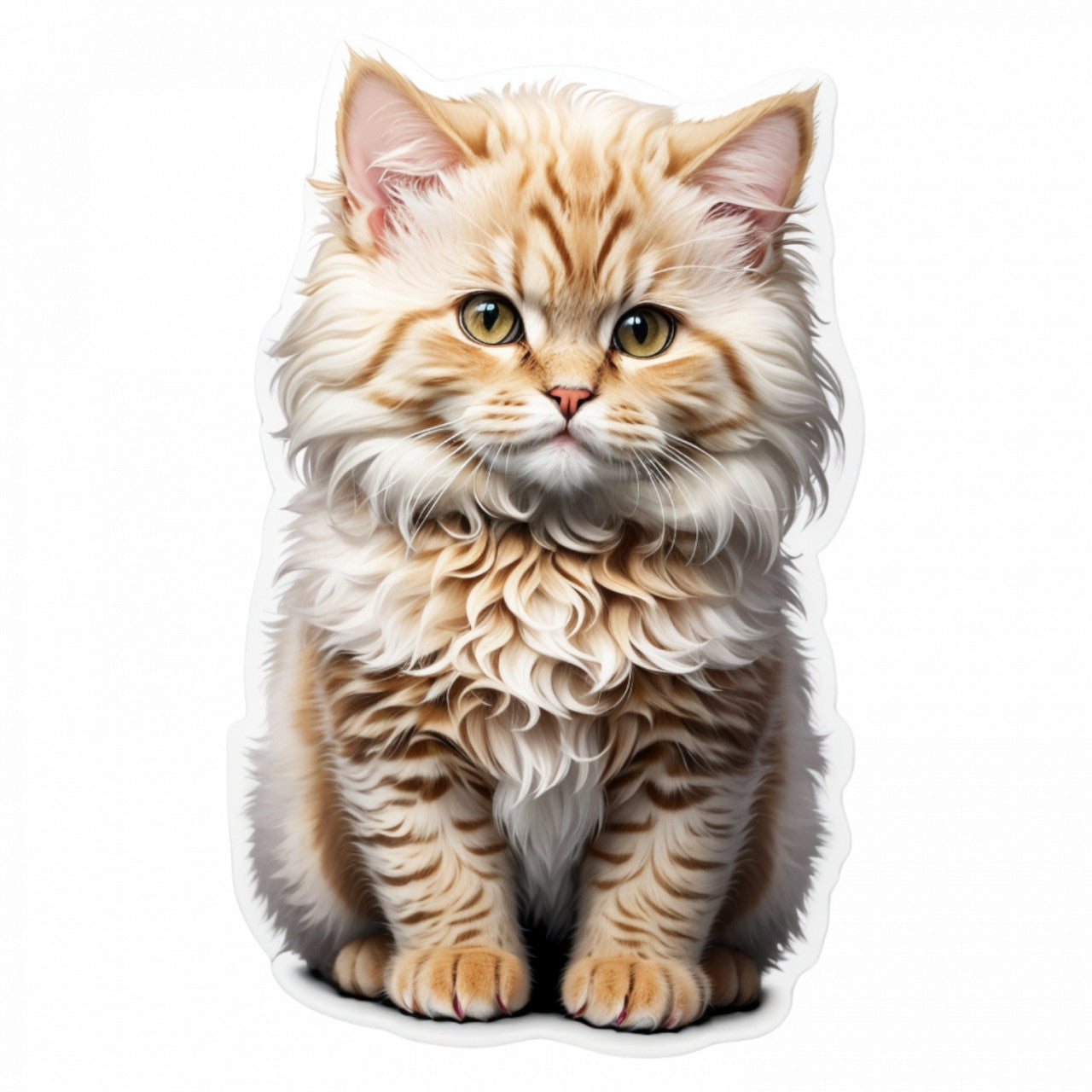 Set 12 bucati, Sticker decorativ, Pisica Selkirk rex, Rezistent la apa, NO3542, 6 cm, Multicolor