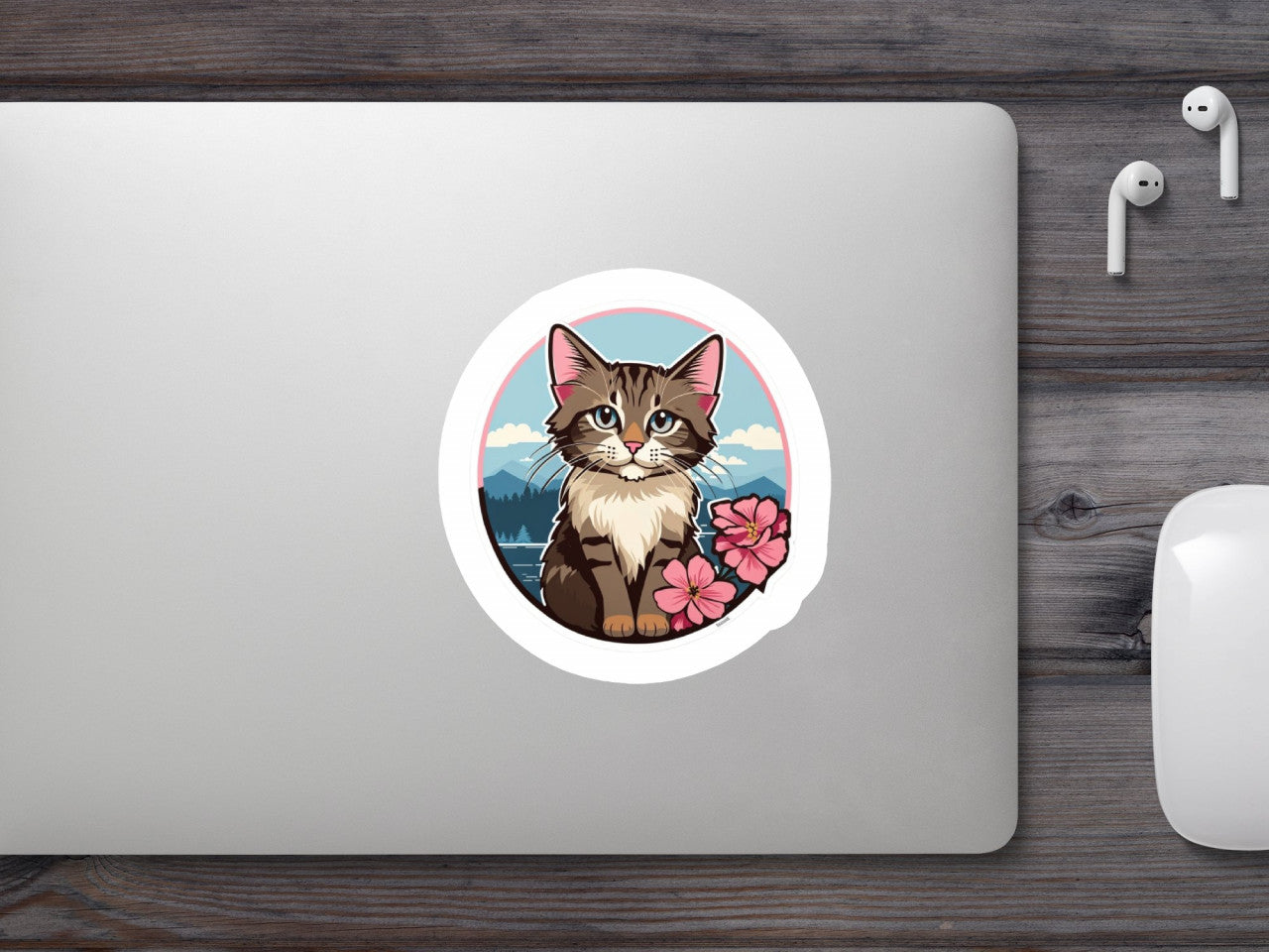 Set 12 bucati, Sticker decorativ, Pisicuta in peisaj, Rezistent la apa, NO4467, 6 cm, Multicolor