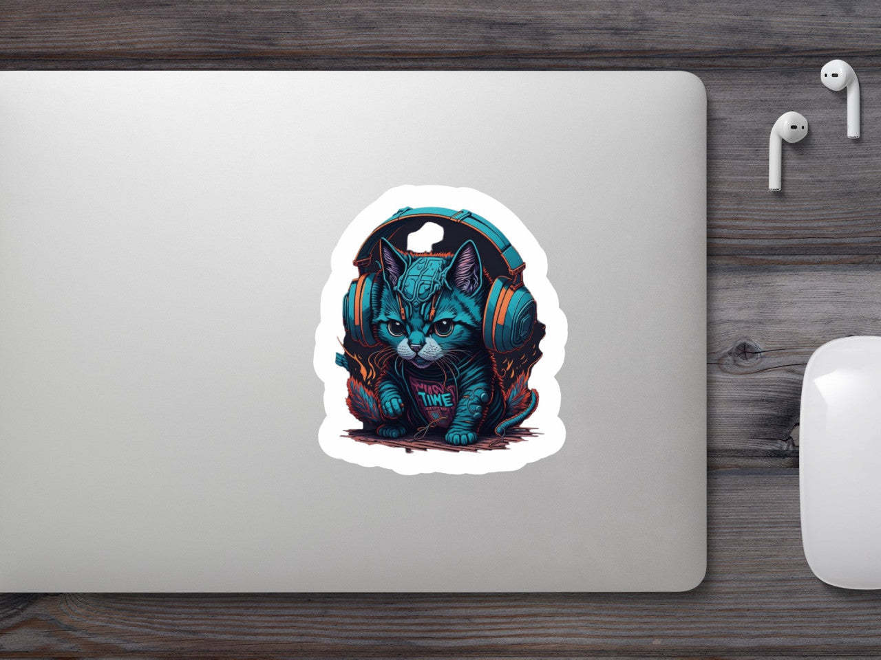 Set 12 bucati, Sticker decorativ, Pisoi cu casti, Rezistent la apa, NO4272, 6 cm, Multicolor