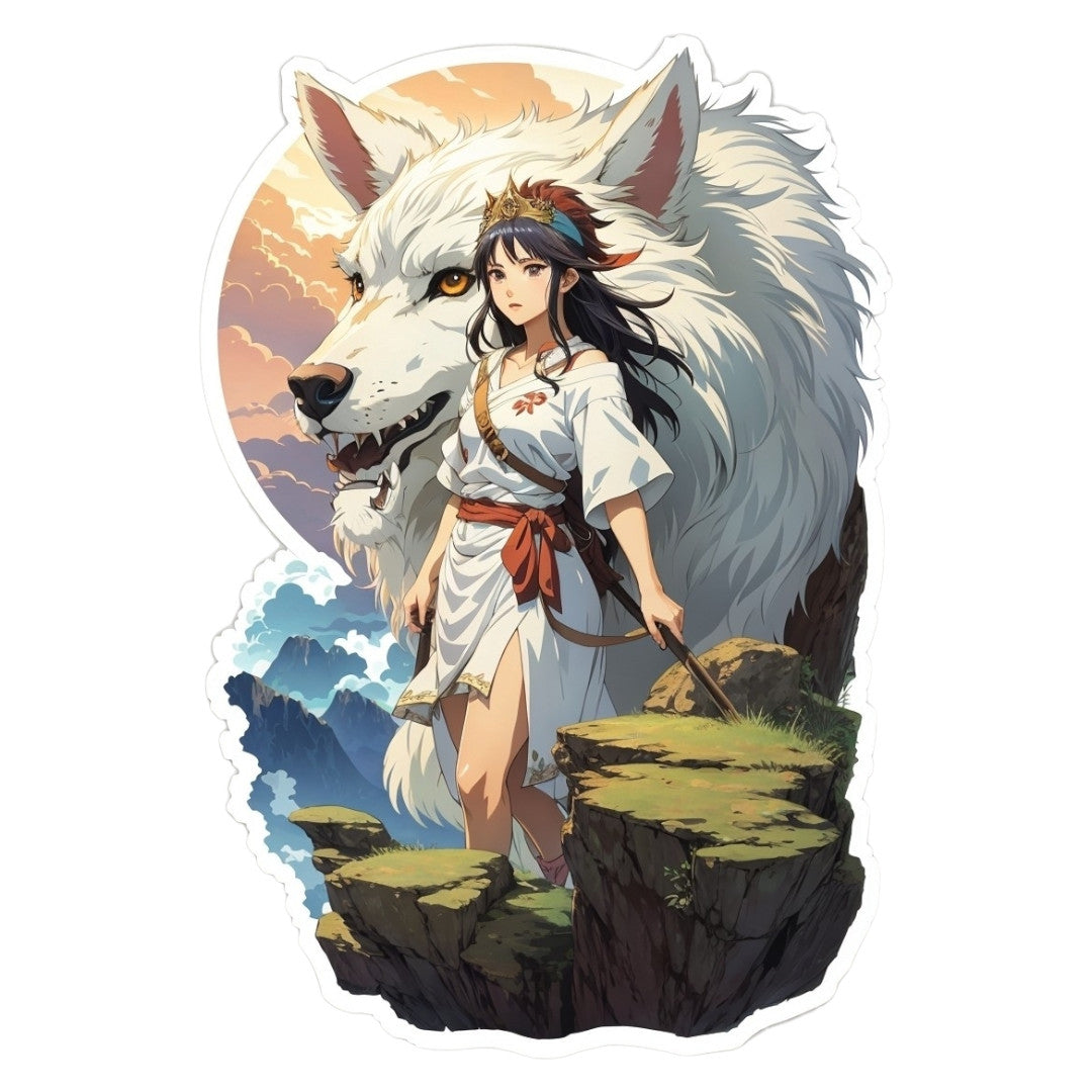 Set 12 bucati, Sticker decorativ, Printesa Mononoke cu lupul , Rezistent la apa, NO4505, 6 cm, Multicolor
