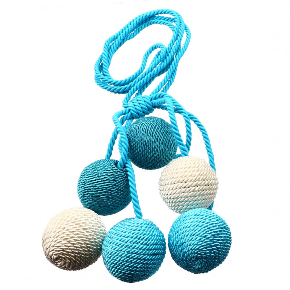 Set 2 buc, Accesorii strangere perdea si draperie, model snur cu 6 bile, 93 cm, Albastru Lungime snur= 93 cm Diametru bila= 5 cm