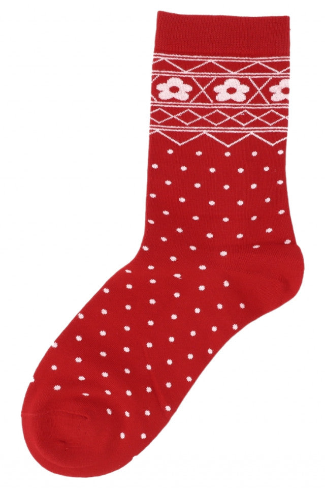 Set 2 bucati, Sosete dama 95% Bumbac, model Craciun, NO2042, 35-40, Rosu