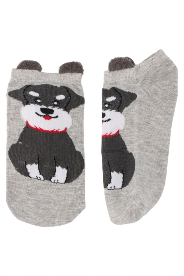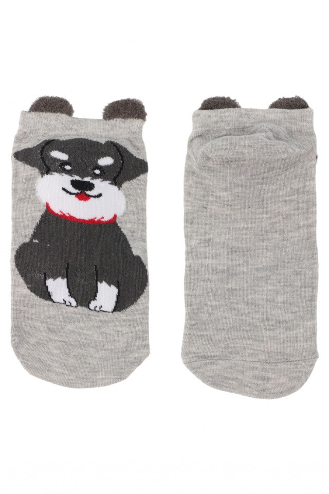 Set 2 bucati, Sosete dama scurte, 95% Bumbac, imprimeu catel, NO8674, 35-41, Gri