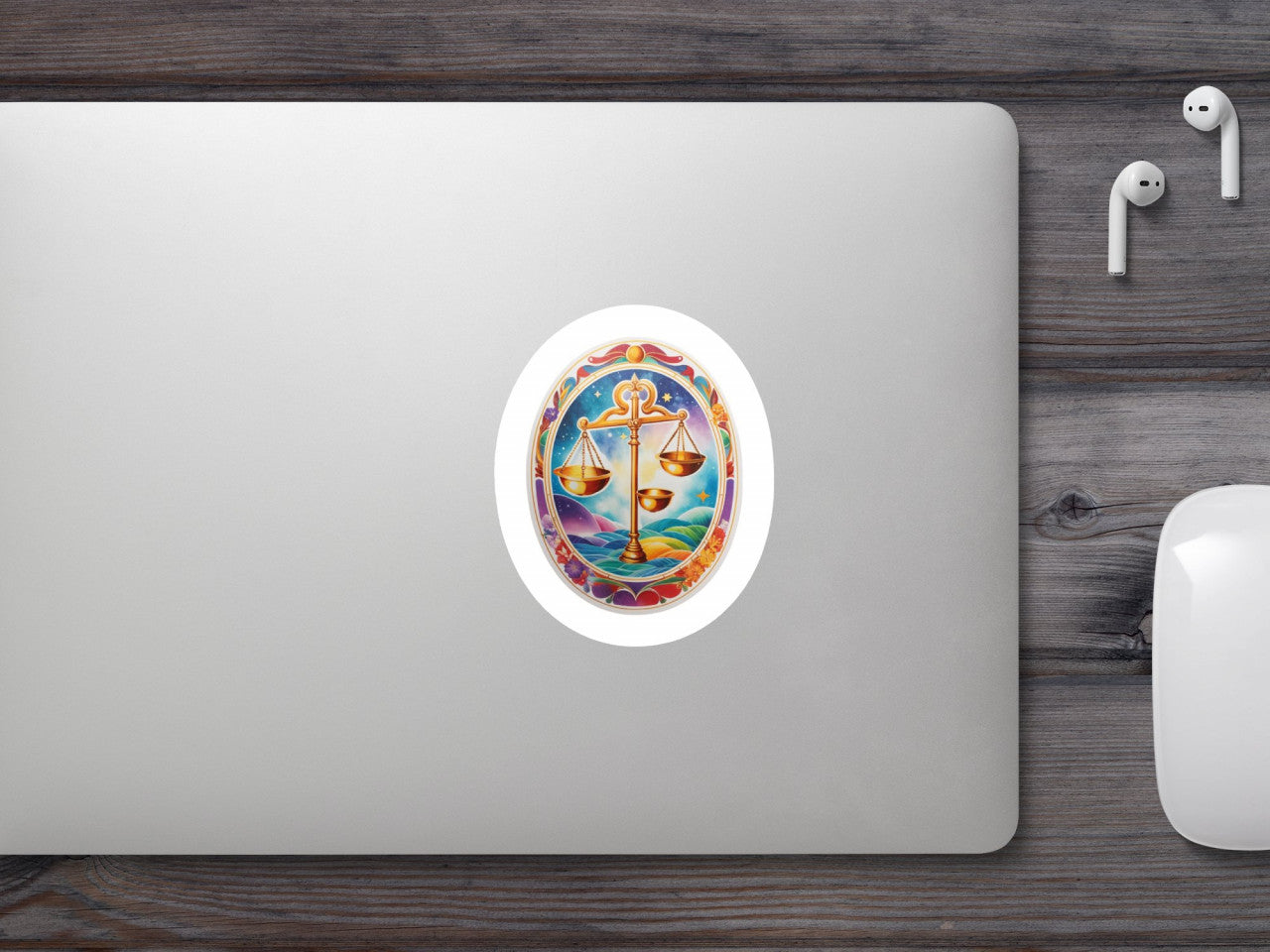 Set 2 bucati, Sticker decorativ, Balanta cu talere goale simbol zodia balanta, Rezistent la apa, NO5505, 16 cm, Multicolor