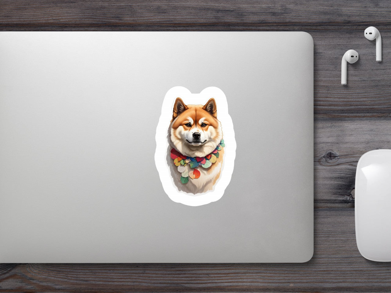 Set 2 bucati, Sticker decorativ, Caine Akita Inu cu salba, Rezistent la apa, NO4927, 16 cm, Multicolor