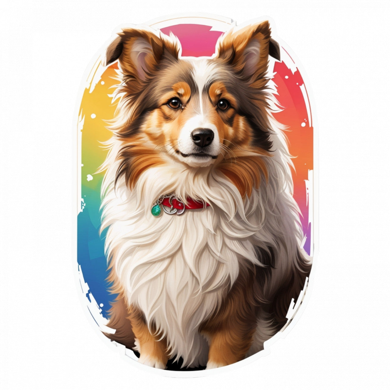 Set 2 bucati, Sticker decorativ, Caine Ciobanescde Shetland cu zgarda, Rezistent la apa, NO5905, 16 cm, Multicolor