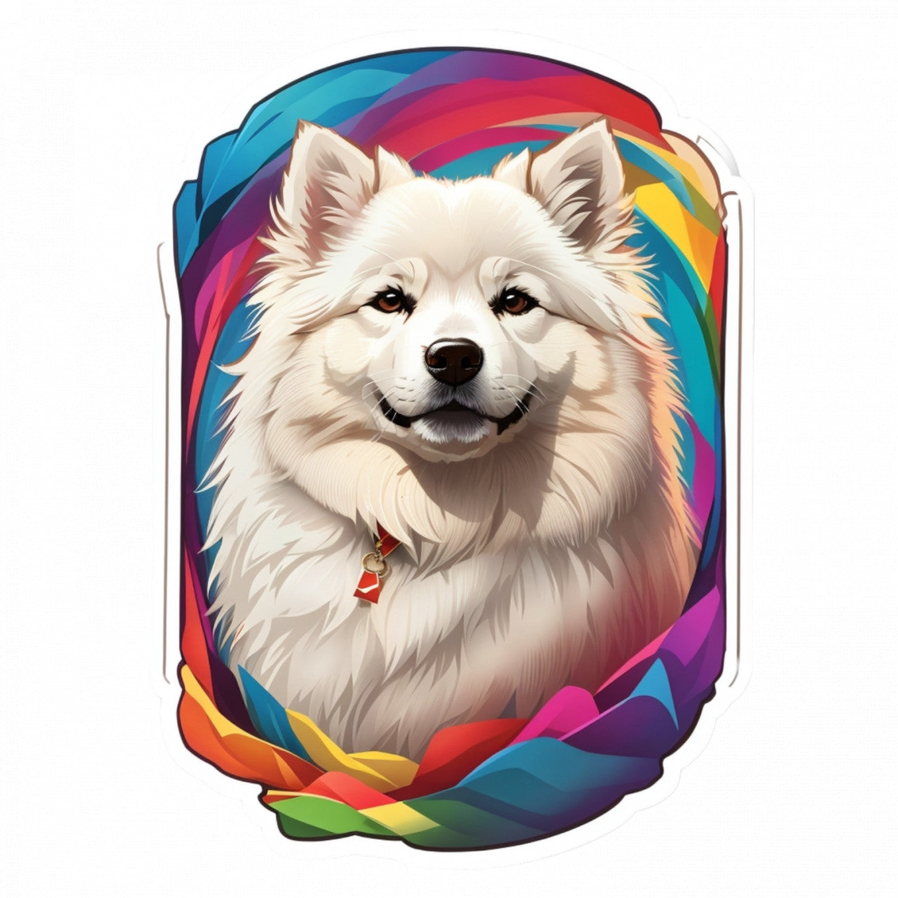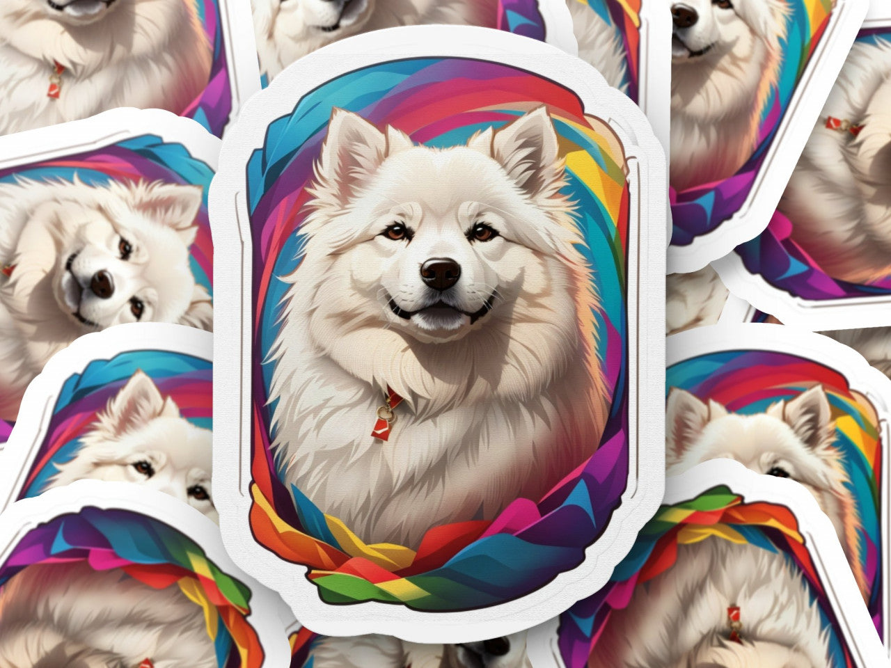 Set 2 bucati, Sticker decorativ, Caine Samoed, Rezistent la apa, NO5870, 16 cm, Multicolor