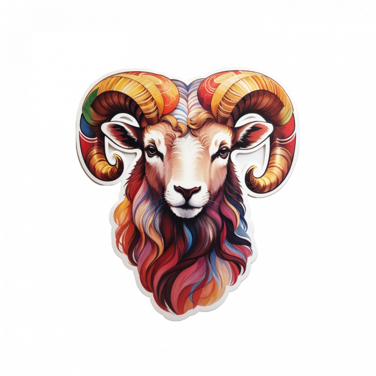 Set 2 bucati, Sticker decorativ, Cap de berbec simbol zodia berbec, Rezistent la apa, NO4850, 16 cm, Multicolor