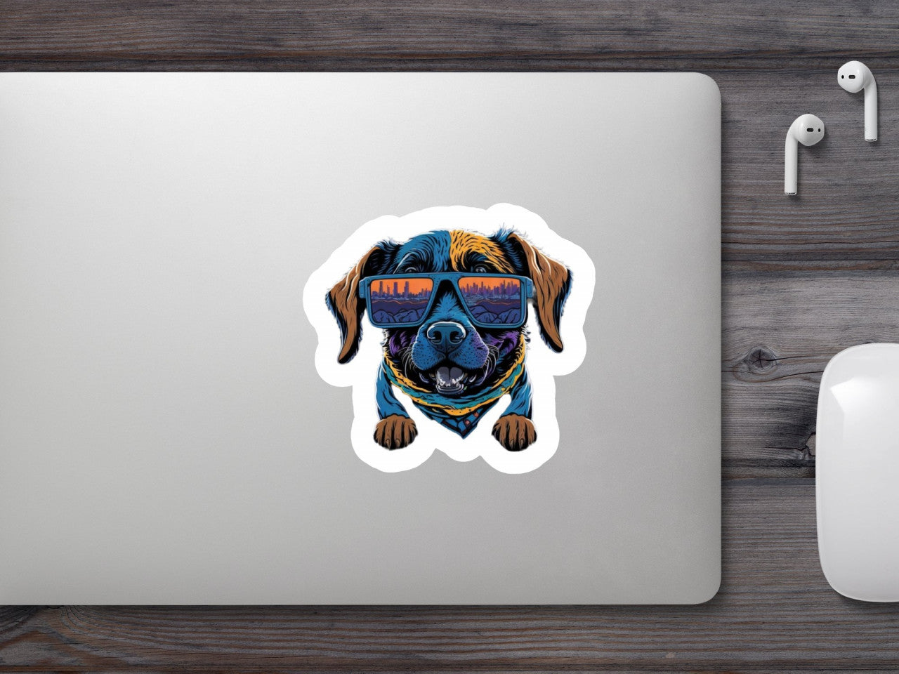 Set 2 bucati, Sticker decorativ, Cap de caine cu ochelari oglinda, Rezistent la apa, NO6975, 16 cm, Multicolor