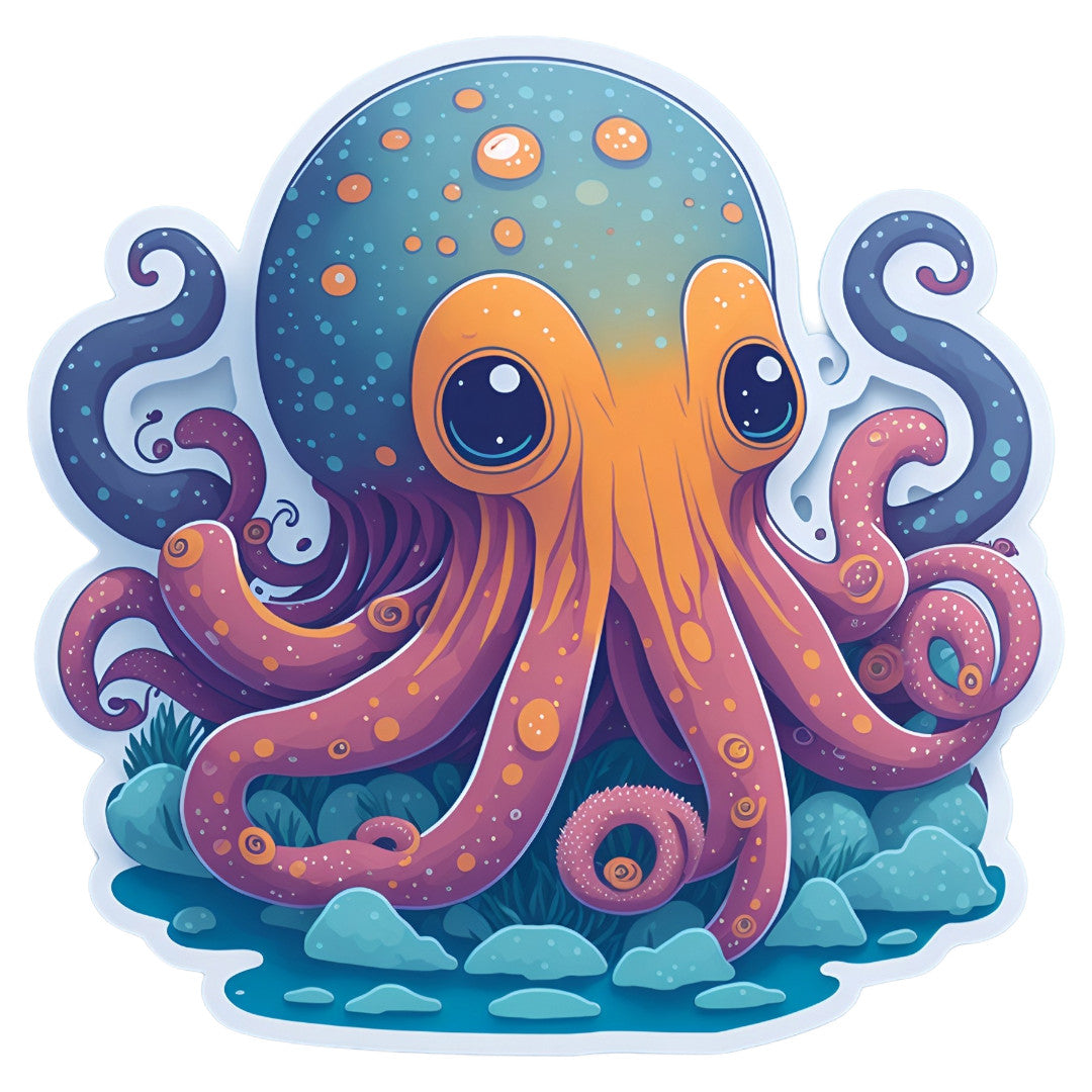 Set 2 bucati, Sticker decorativ, Caracatita pe gheata, Rezistent la apa, NO6580, 16 cm, Multicolor